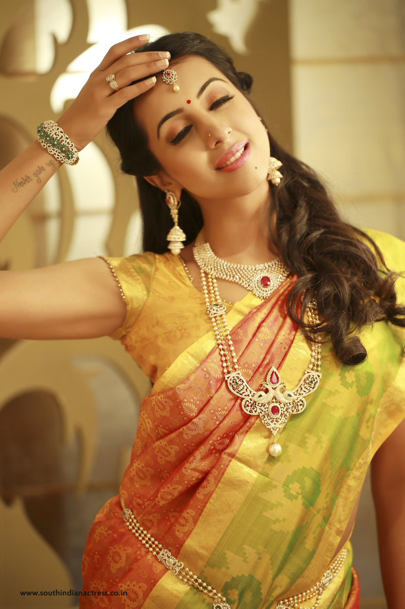 Actress Sanjjanaa Galraniin Saree photos. South Indian actress Actress Sanjjanaa in wedding Saree stills. Kannada actress Sanjjanaa saree photos. Sanjjanaa photos
