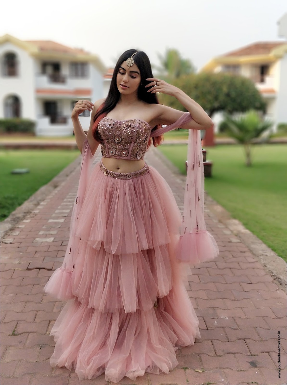 Adah Sharma stills at a friend’s wedding wearing wedding outfit by Yoshita Couture, Jewelry by Aquamarine Jewellery.