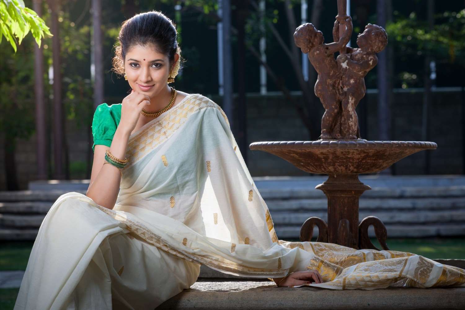 Shruti Prakash latest photoshoot stills in kanchivaram saree and zardosi embroidered blouse styled by Shloka Sudhakar. Captured by photographer Sandeep MV. Makeup by Soumya...