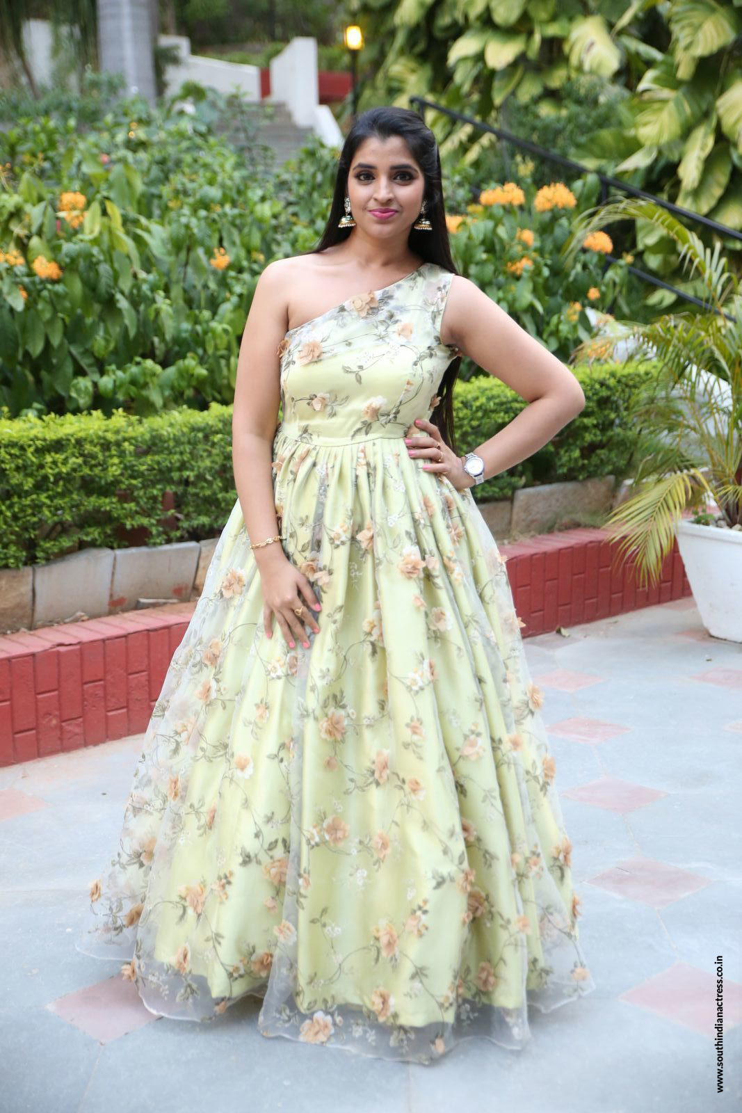 Anchor Syamala in lehenga stills at Ishq Pre-Release. Syamala wearing pink lehenga from RROYAL DESIGNERS.
