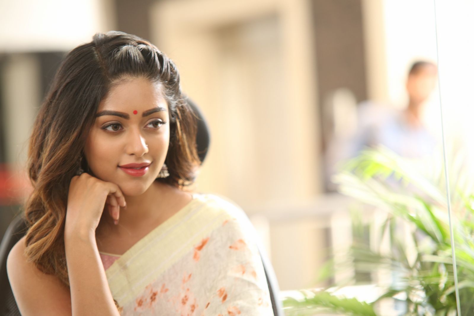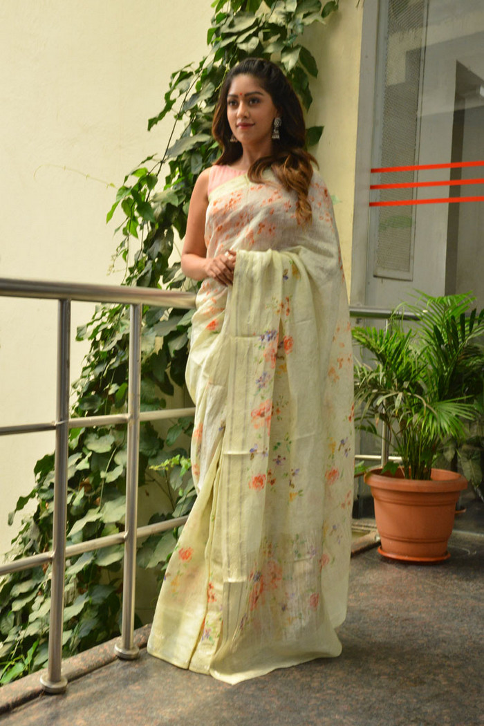 Anu Emmanuel saree stills at Shailaja Reddy Alludu Interview.