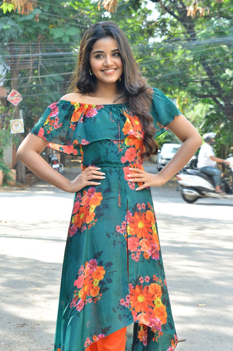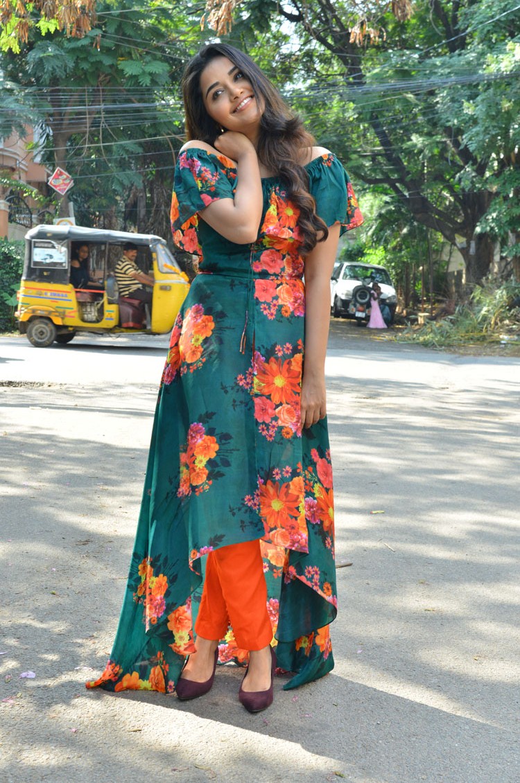 Anupama Parameswaran Stills From Hello Guru Prema Kosame movie Promotions. For the promotion, Anupama Parameswaran wore a green floral print off-shoulder-floral slit kurta paired with orange cigarette pants. Maroon pumps and wavy hair rounded out her look!