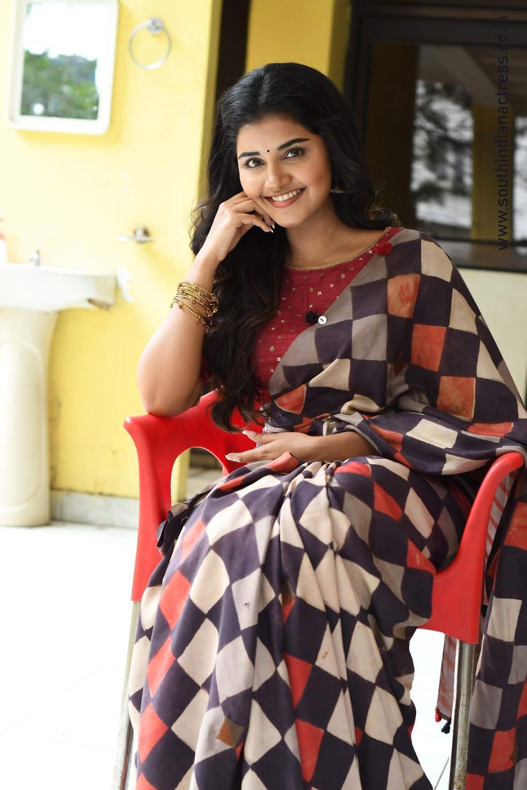 Anupama Parameswaran glamorous stills in saree at her Telugu movie Karthikeya 2 100cr success Celebrations.