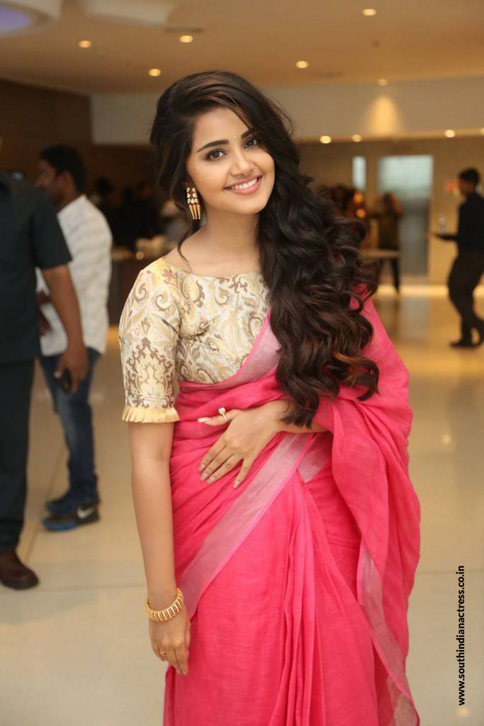 Anupama Parameswaran attended the thanks meet of Vunndai Okate Zindagi wearing a pink line saree paired with beige boat neck brocade blouse. Simple jewellery and side swept curls finished out her look!