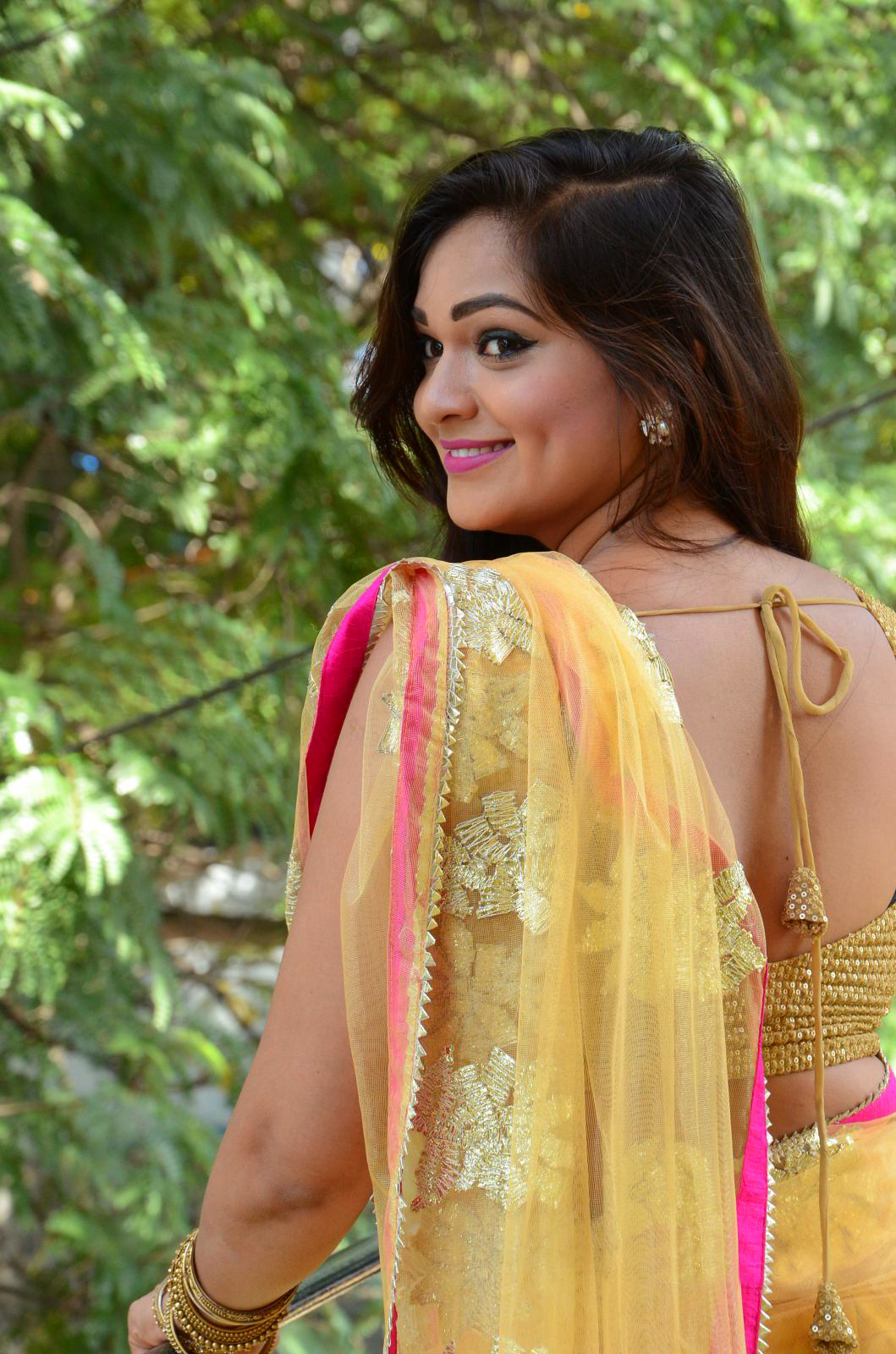 Bigg Boss fame Ashwini Sree stills in lehena at her upcoming Telugu movie Miss Janaki launch. [embedyt] https://www.youtube.com/watch?v=UwvNVh4VK9A[/embedyt]