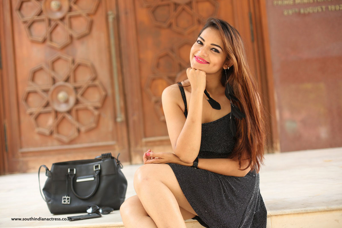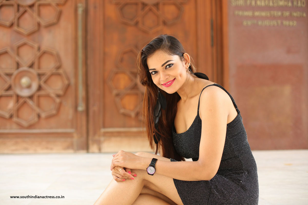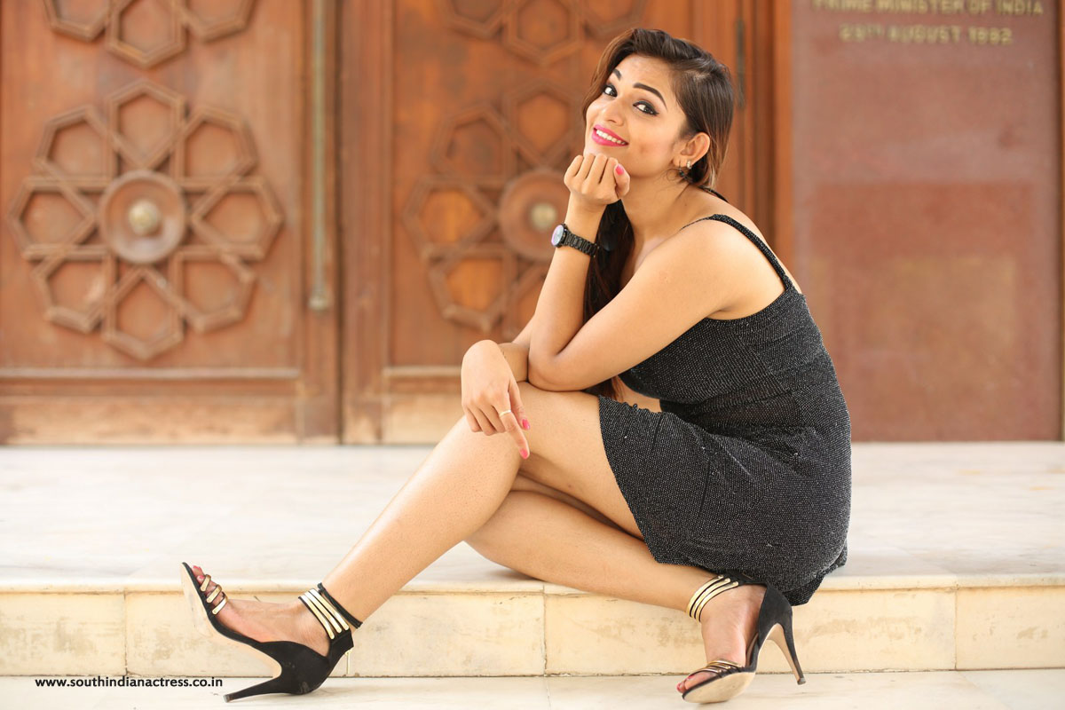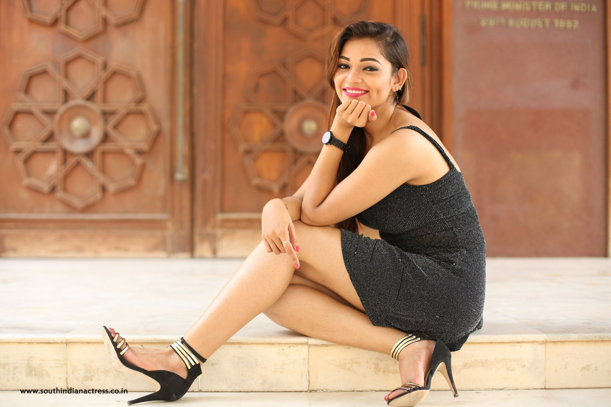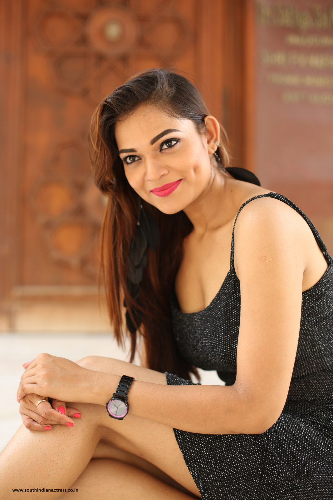 Ashwini Hot Stills in black short dress at Desire Exhibition