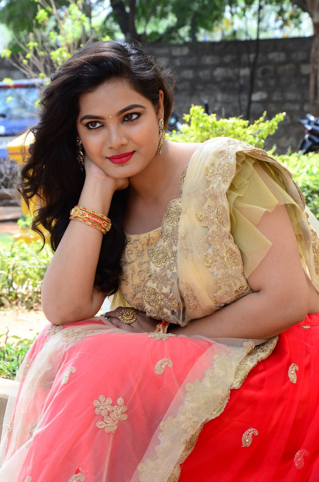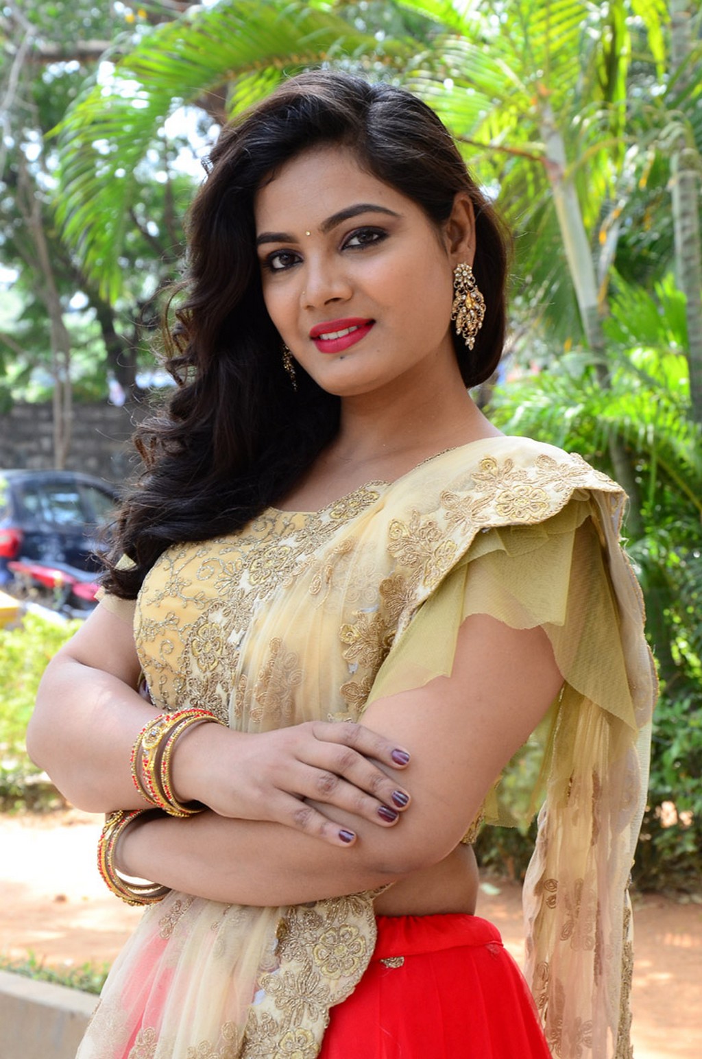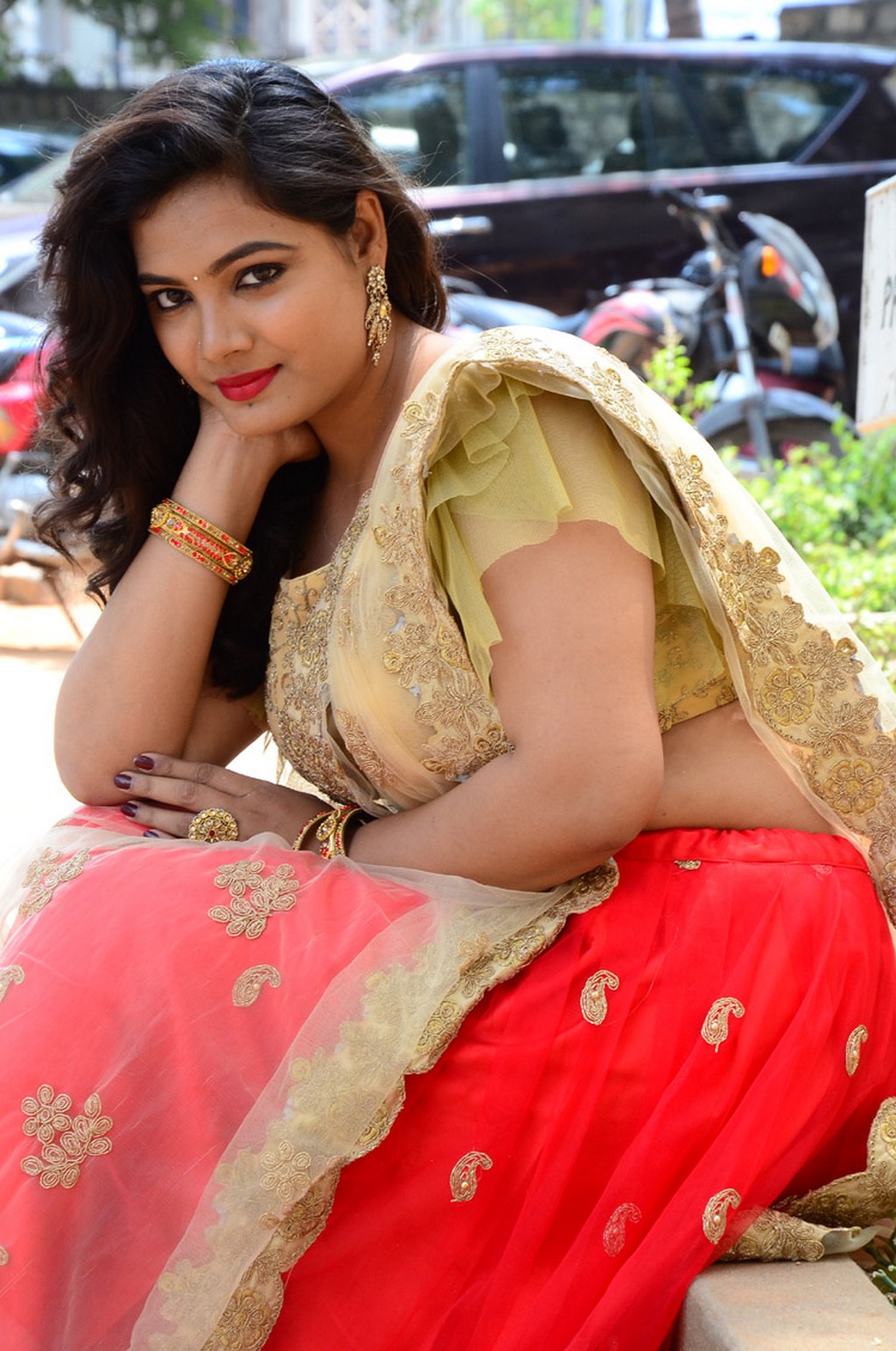 Actress Preeti Neha made an elegant appearance at the song launch event for her debut movie, Premistunnaa, wearing an elegant and traditional half-saree ensemble,...