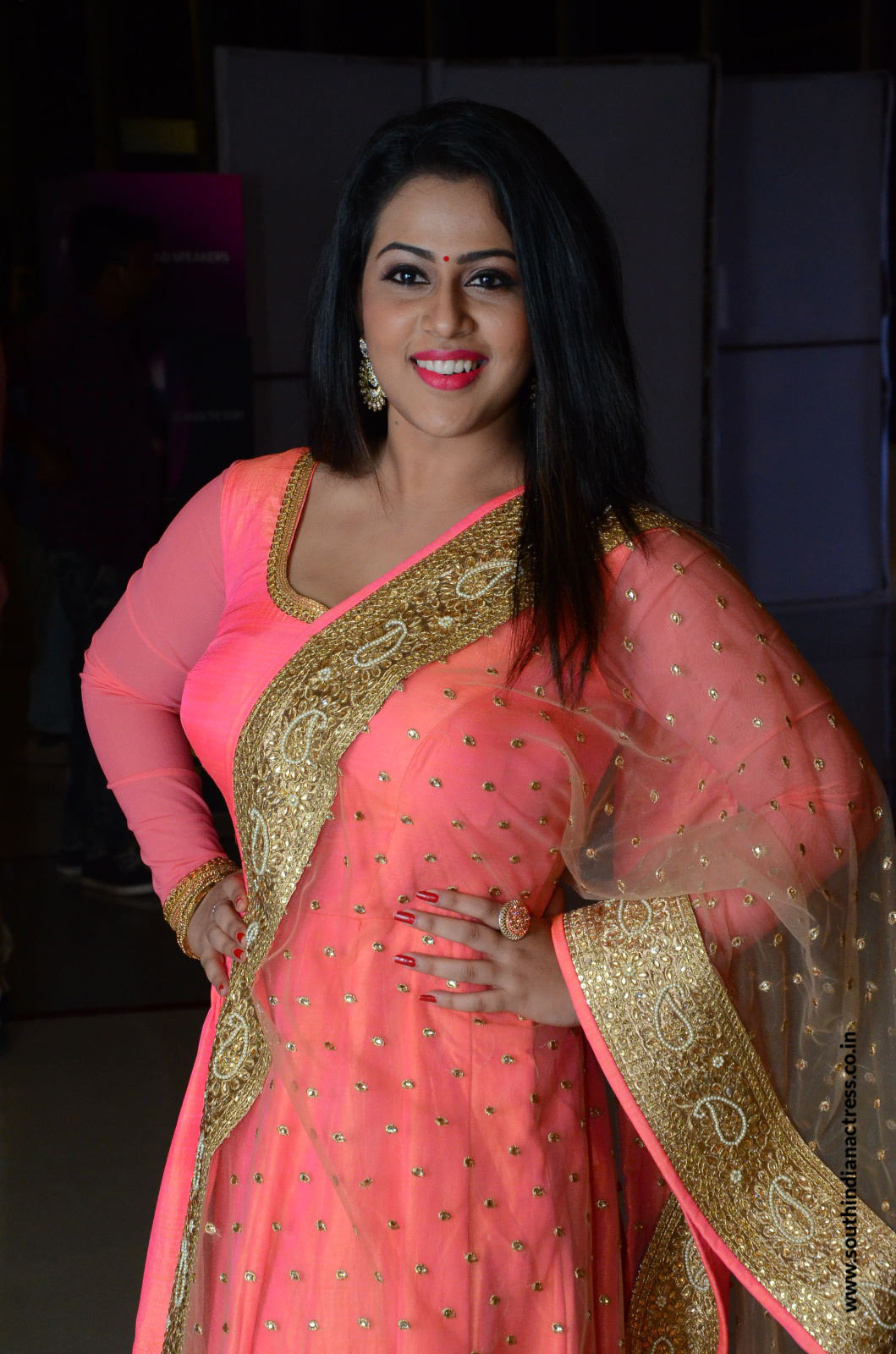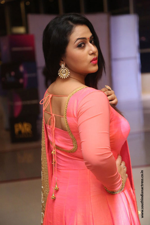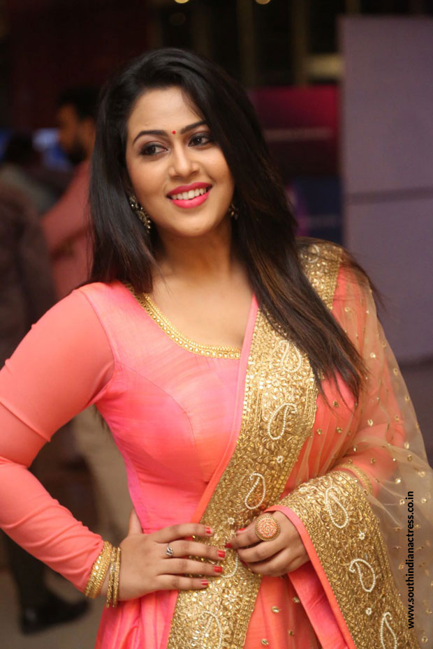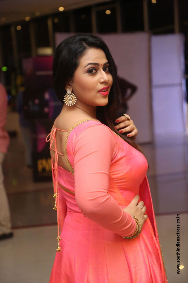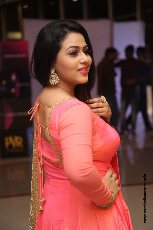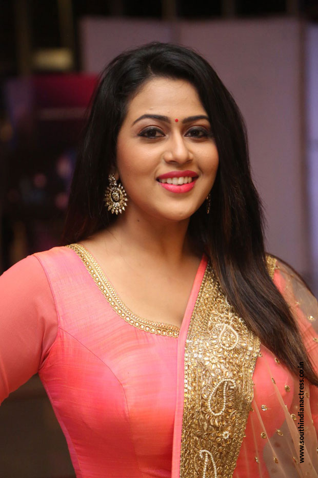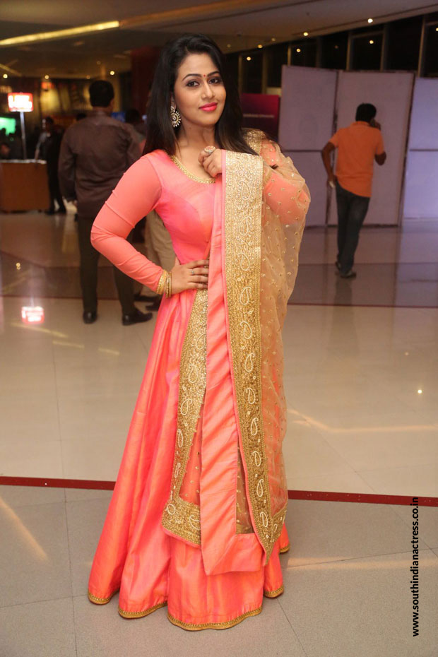 Diana Champika attended the audio launch event of Indrasena wearing a peach floor length anarkali suit. She finished off her look with a pair of chand bali earrings and straight hair!