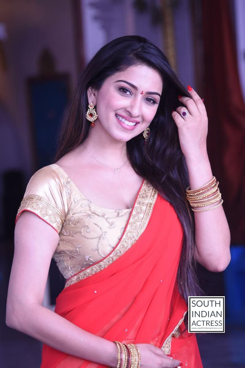 Telugu actress Eshanya Maheshwari hot stills in saree showing her navel at Ammai Nachindi Movie Opening.
