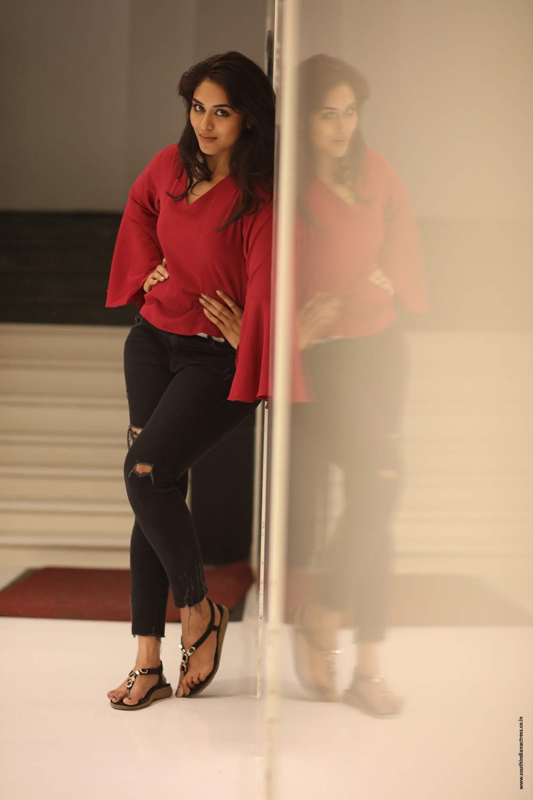 Trupti Ravindra latest stills in red saree at Telugu movie Bhadrakali Interview. The movie Bhadrakali (also known as Sakthi Thirumagan in Tamil) is an...