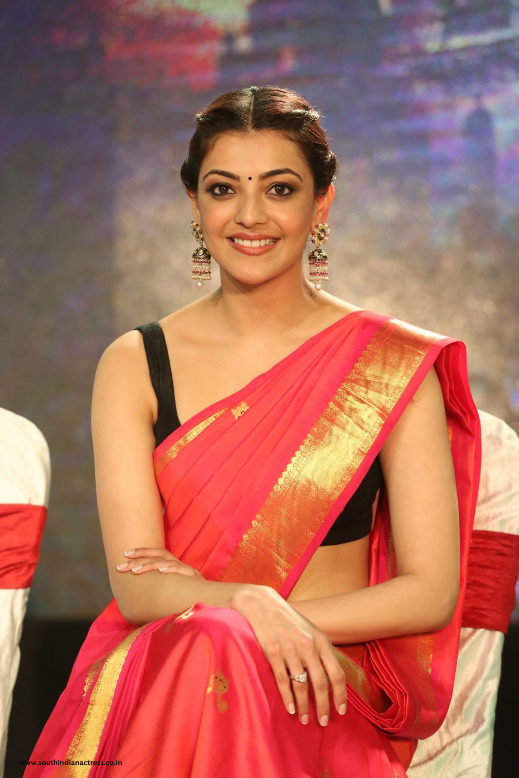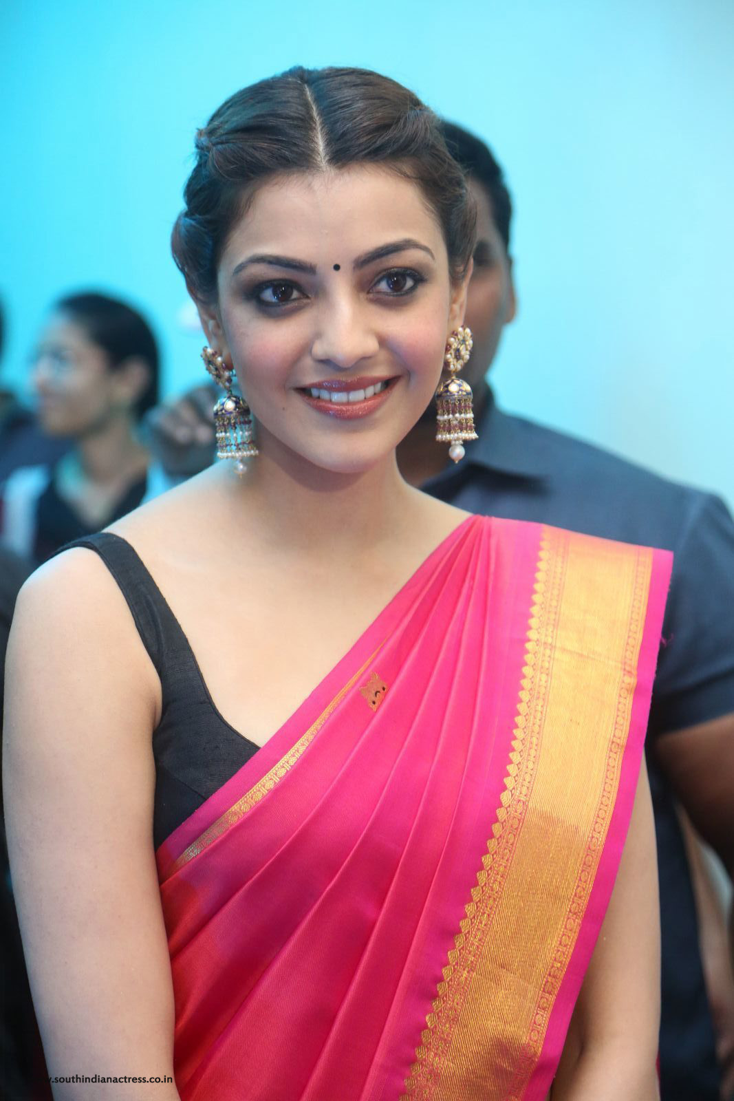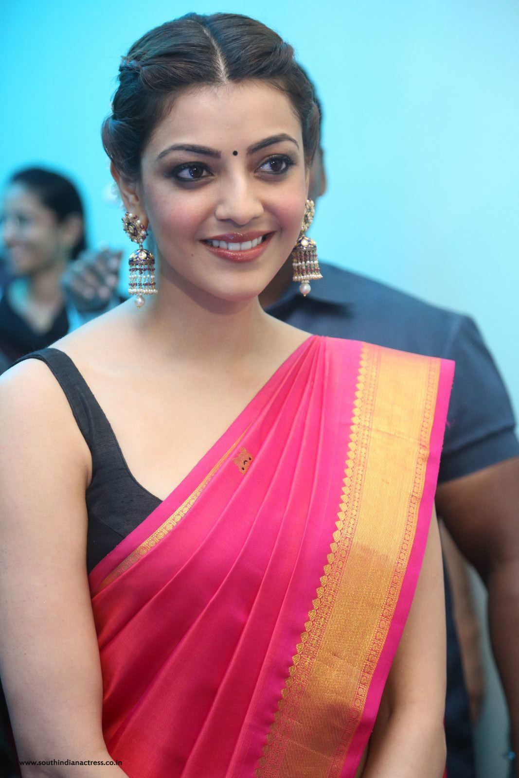Kajal Aggarwal saree stills at Vidhatri Shopping Mall launch at Vijayawada.