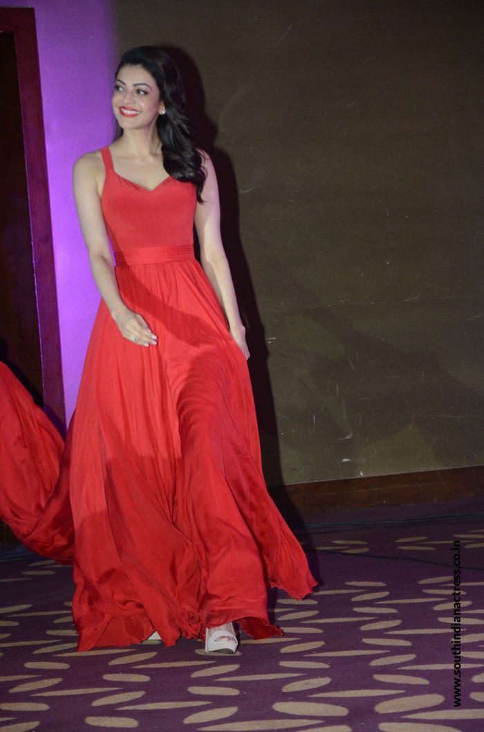 Kajal Aggarwal stills in red dress at Ponds Starlight perfumed talc launch