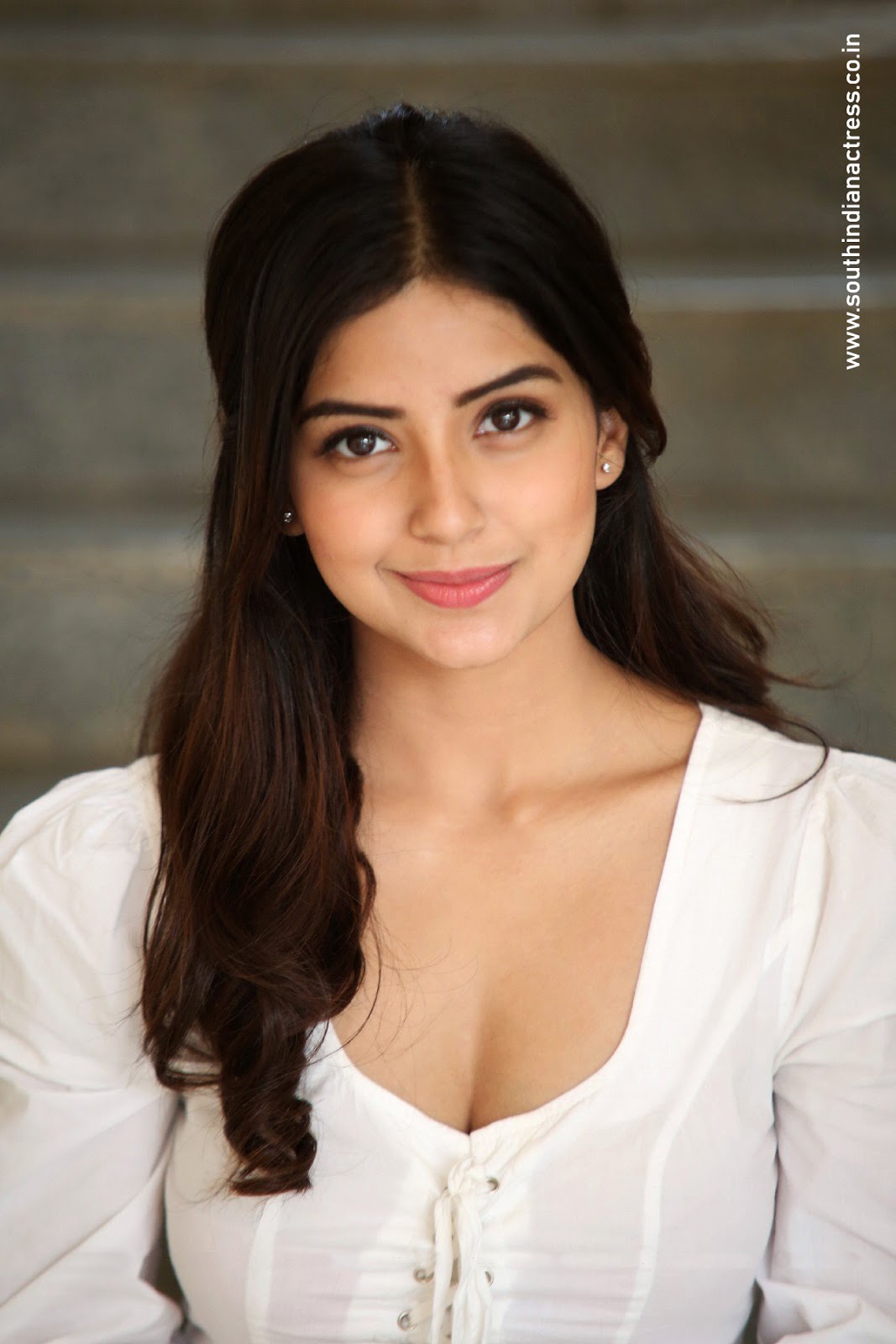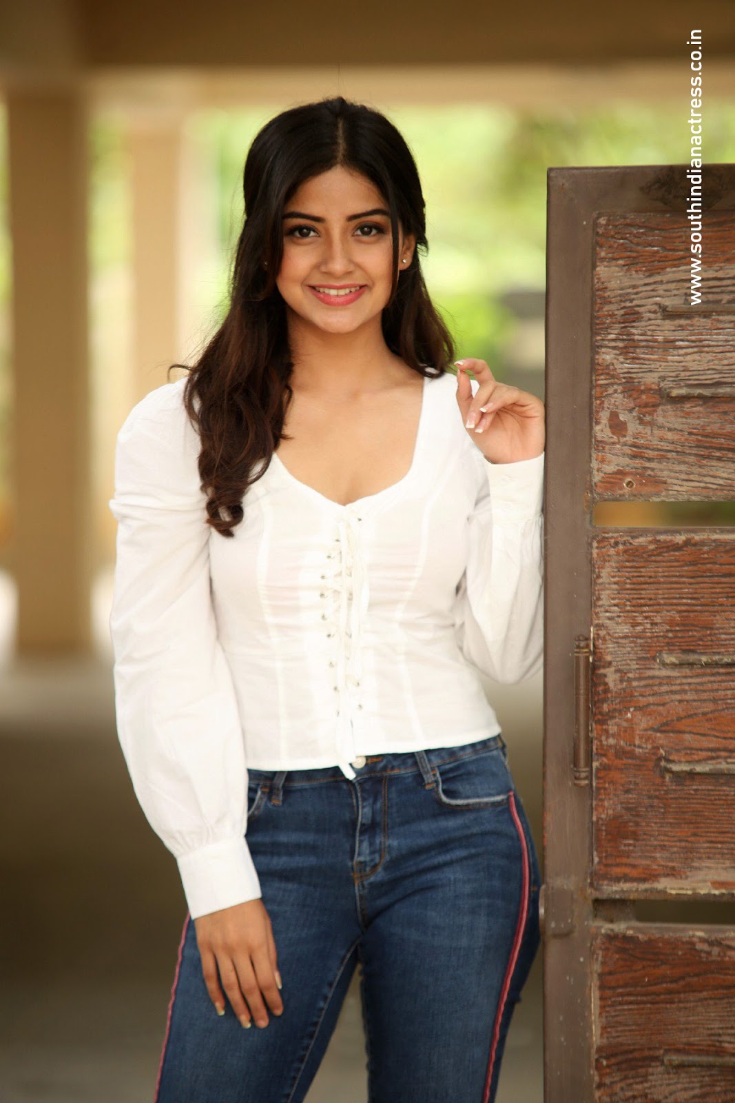 Kashmira Pardeshi stills at Narthanasala movie Interview. South Indian actress Kashmira Pardeshi hot cleavage stills in white shirt and blue jeans at Narthanasala movie interview.