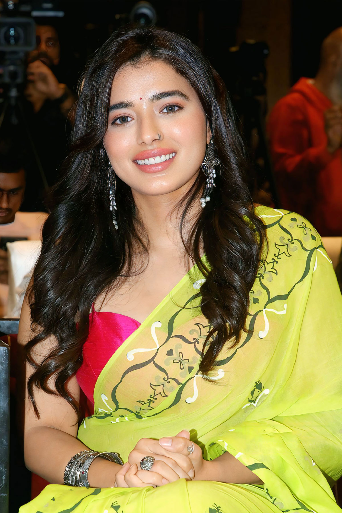 Wearing a vibrant green saree, Ketika Sharma turned heads at the blockbuster press meet of Telugu movie Single.