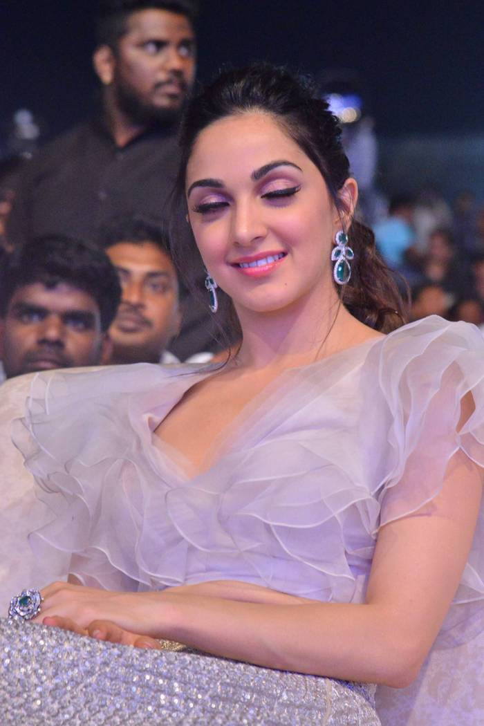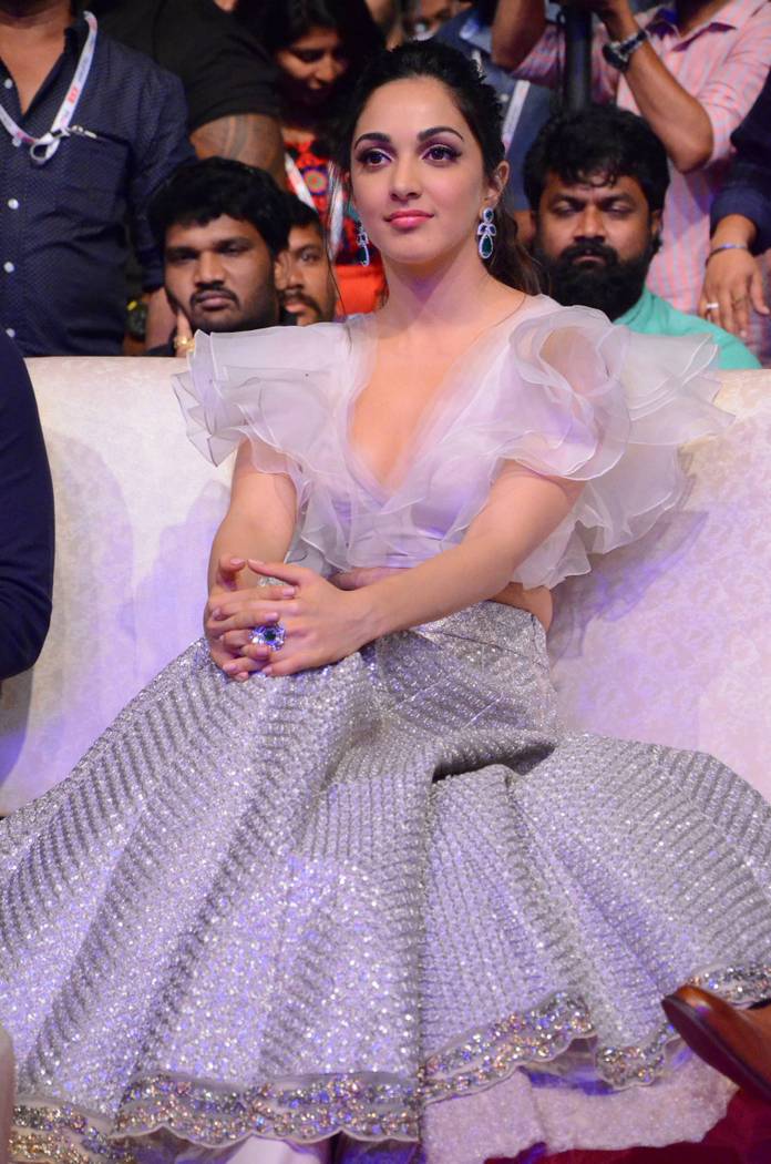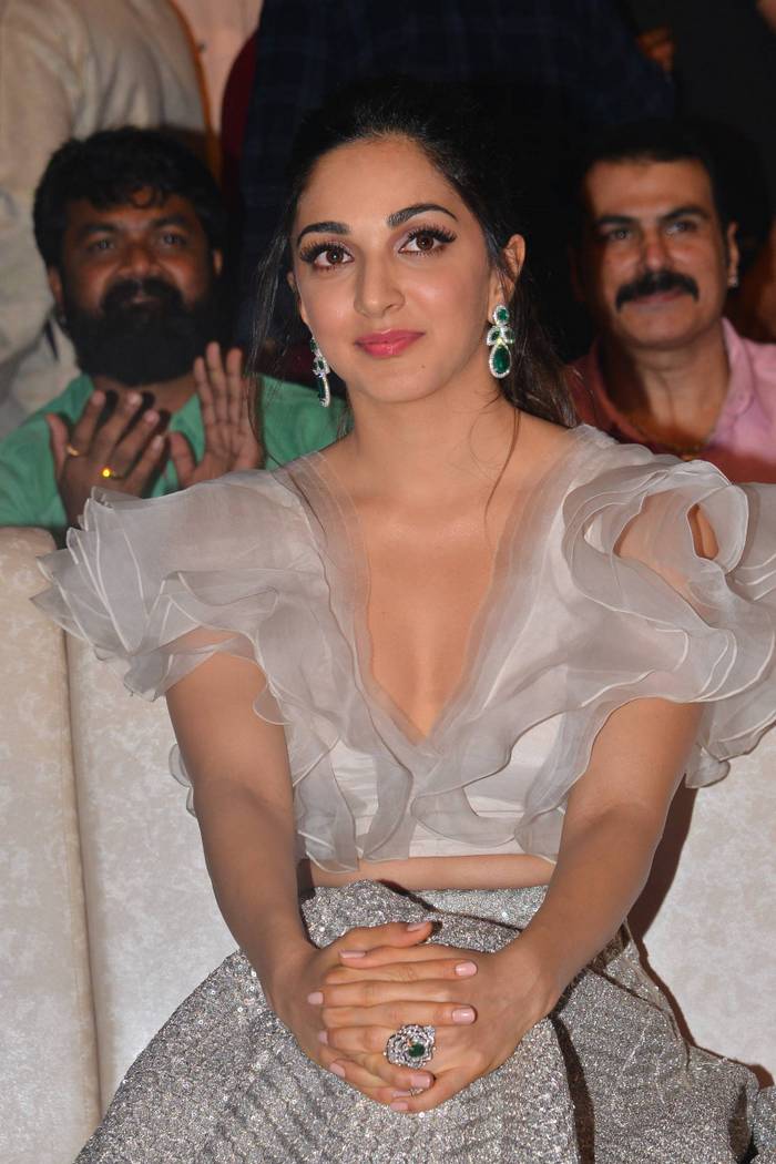 Kiara Adavni attended Bharat Bahiranga Sabha event wearing a silver embellished long skirt paired with dramatic ruffled crop top. She accessorized her outfit with diamond emerald earrings and ring and finished off her look with a high ponytail!