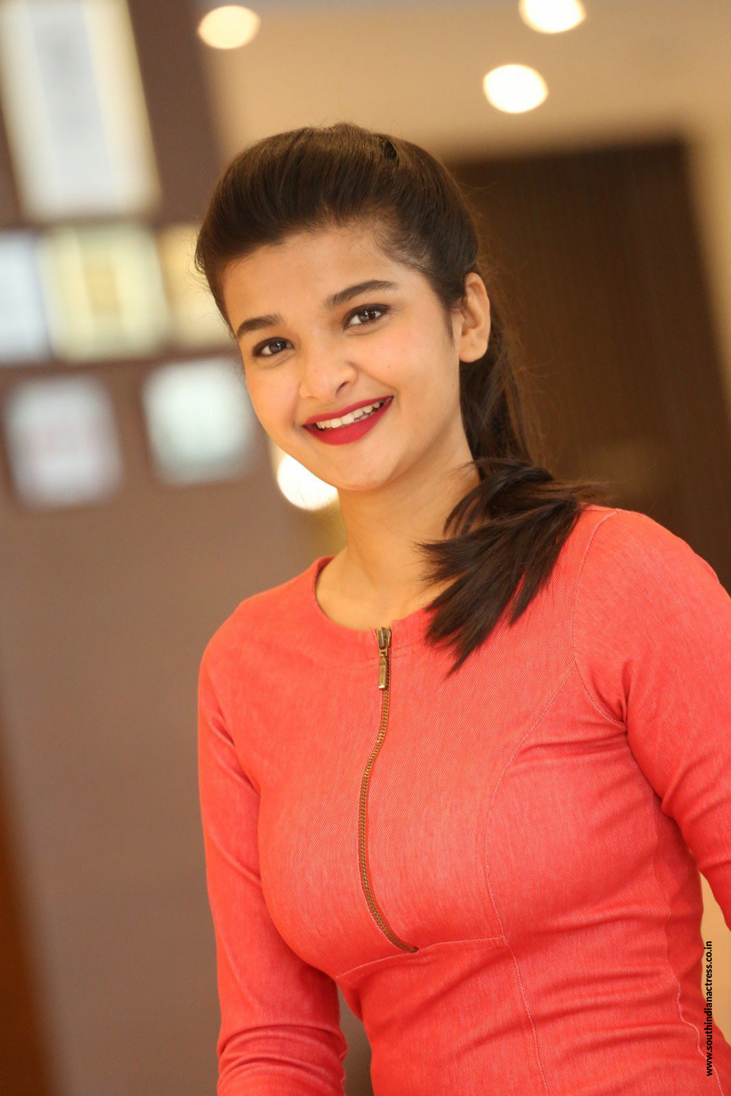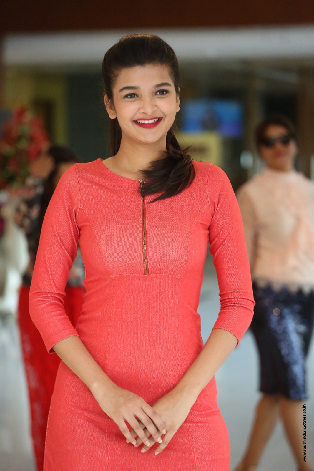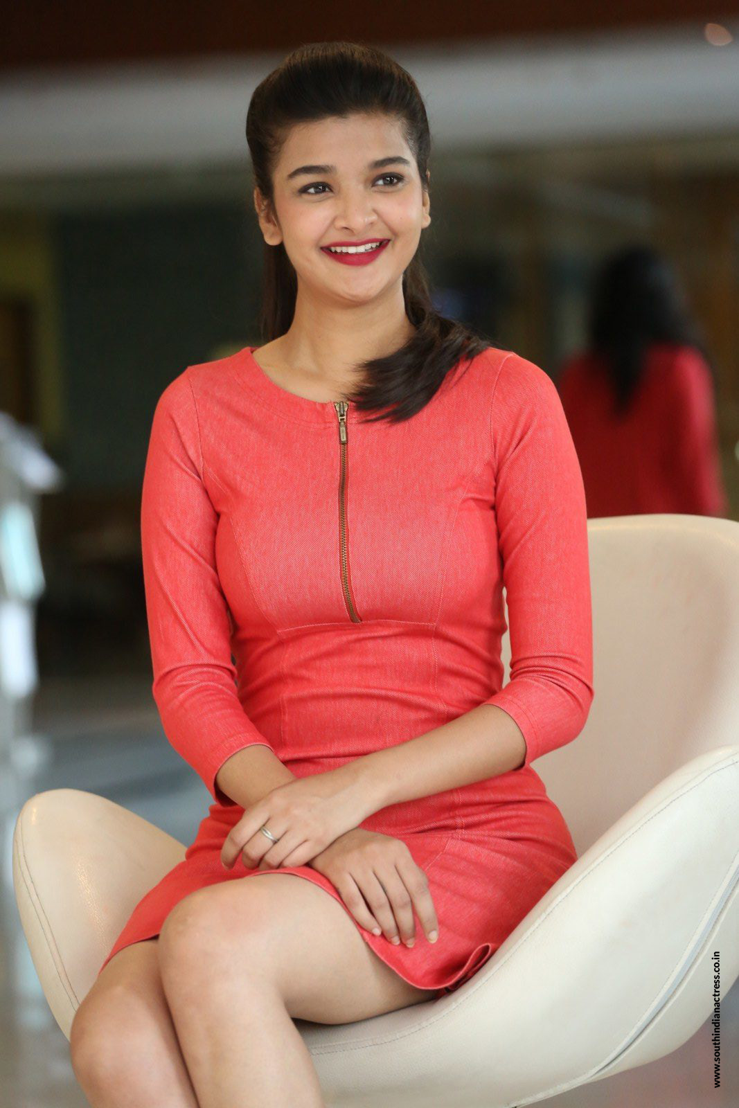 Sahiba Bhasin sizzling stills in black bodycon short dress at Telugu movie Average Student Nani interview.