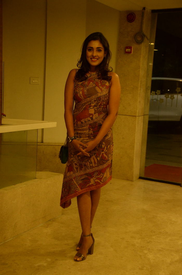 Madhu Shalini stills at Goodachari movie Success Meet. Madhu Shalini attended the success meet wearing a Kalamkari dress. Gold ankle strap heels and a green cross body bag finished off her look! The crew of Goodachari celebrated the success of their movie which hit theatres yesterday in Hyderabad. Adivi Sesh, Sobhita Dhulipala, Madhu Shalini, Sashi Kiran Tikka, Abhishek Nama, Anil Sunkara were seen at the event.
