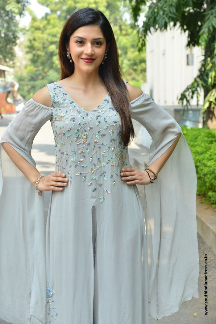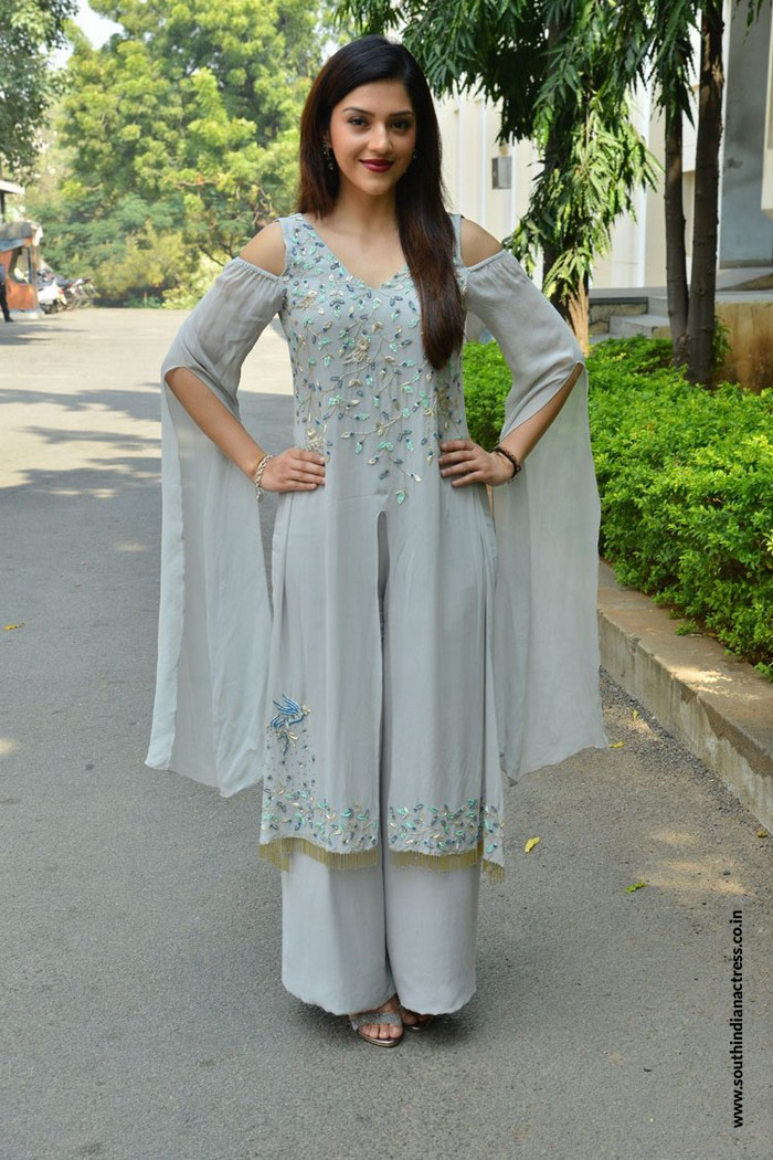 Mehreen Pirzada in white crop top with palazzo at Telugu movie “Spark The Life” Interview.