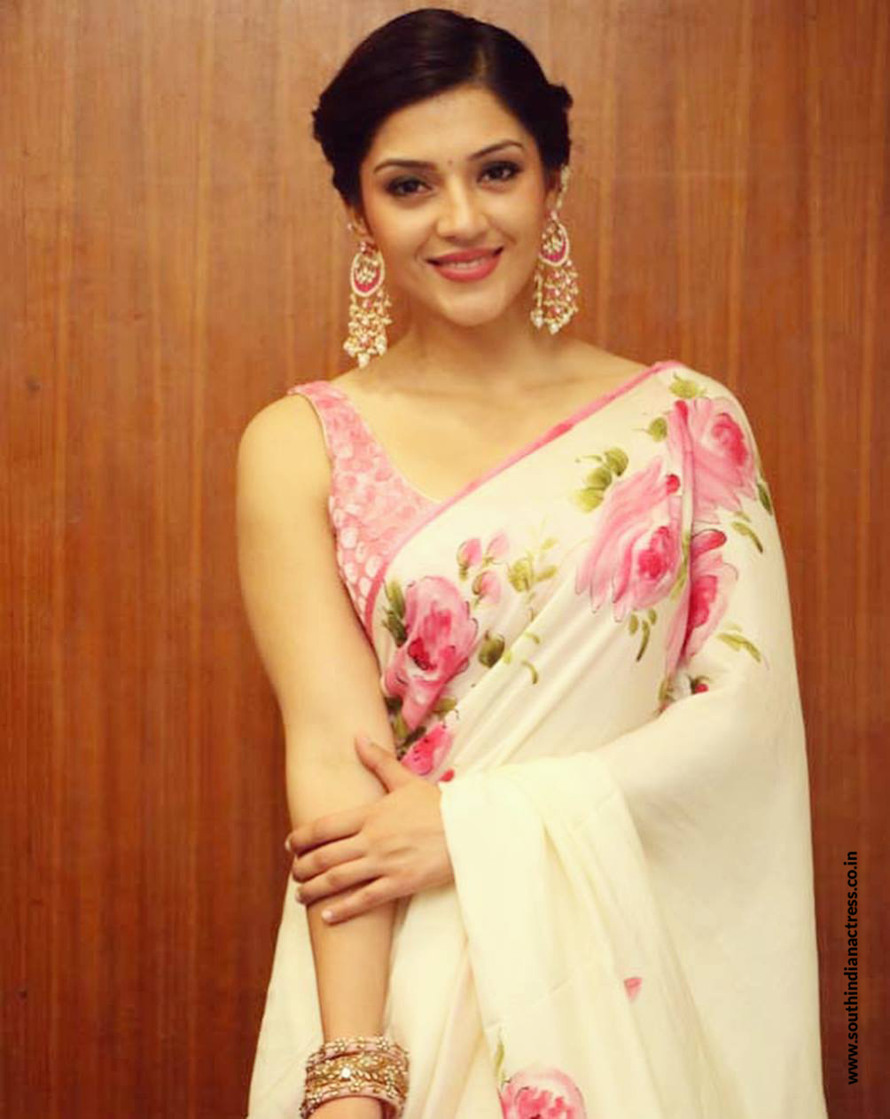Mehreen Pirzada in floral lehenga stills at her upcoming Telugu movie Spark Pre Release Event.