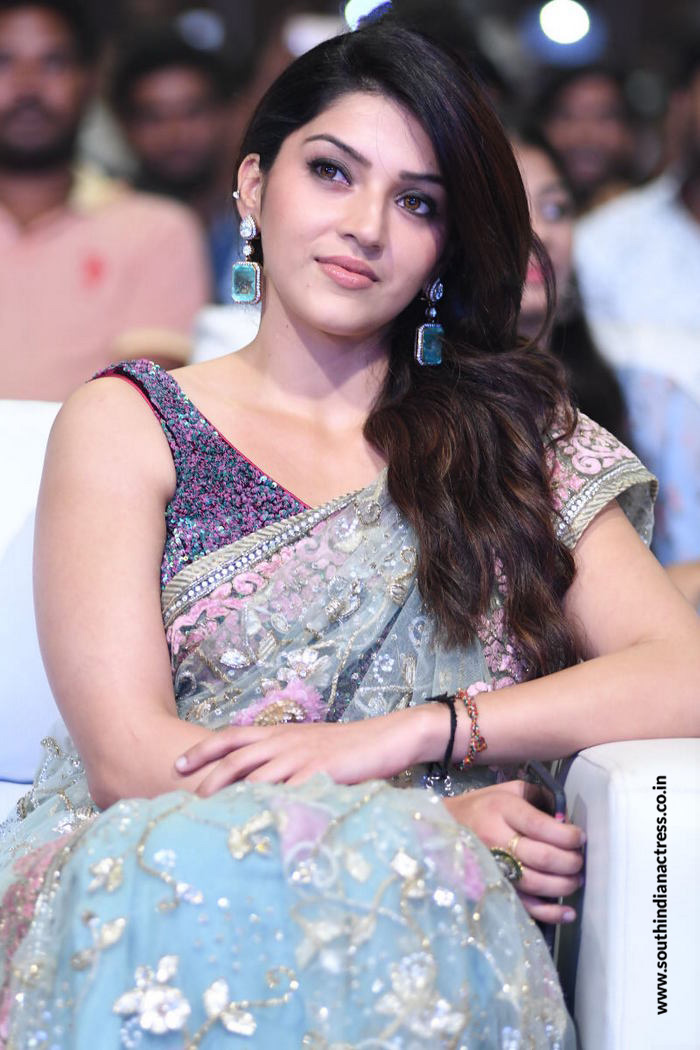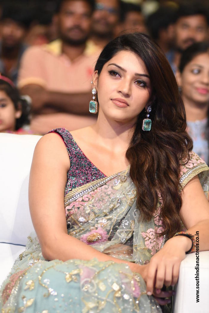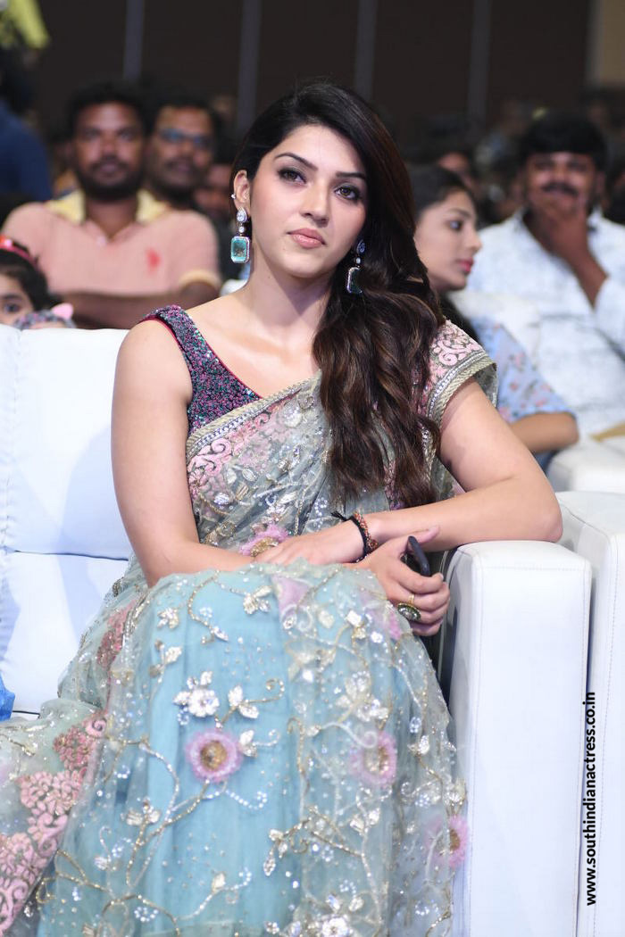 Mehreen Pirzada in floral lehenga stills at her upcoming Telugu movie Spark Pre Release Event.