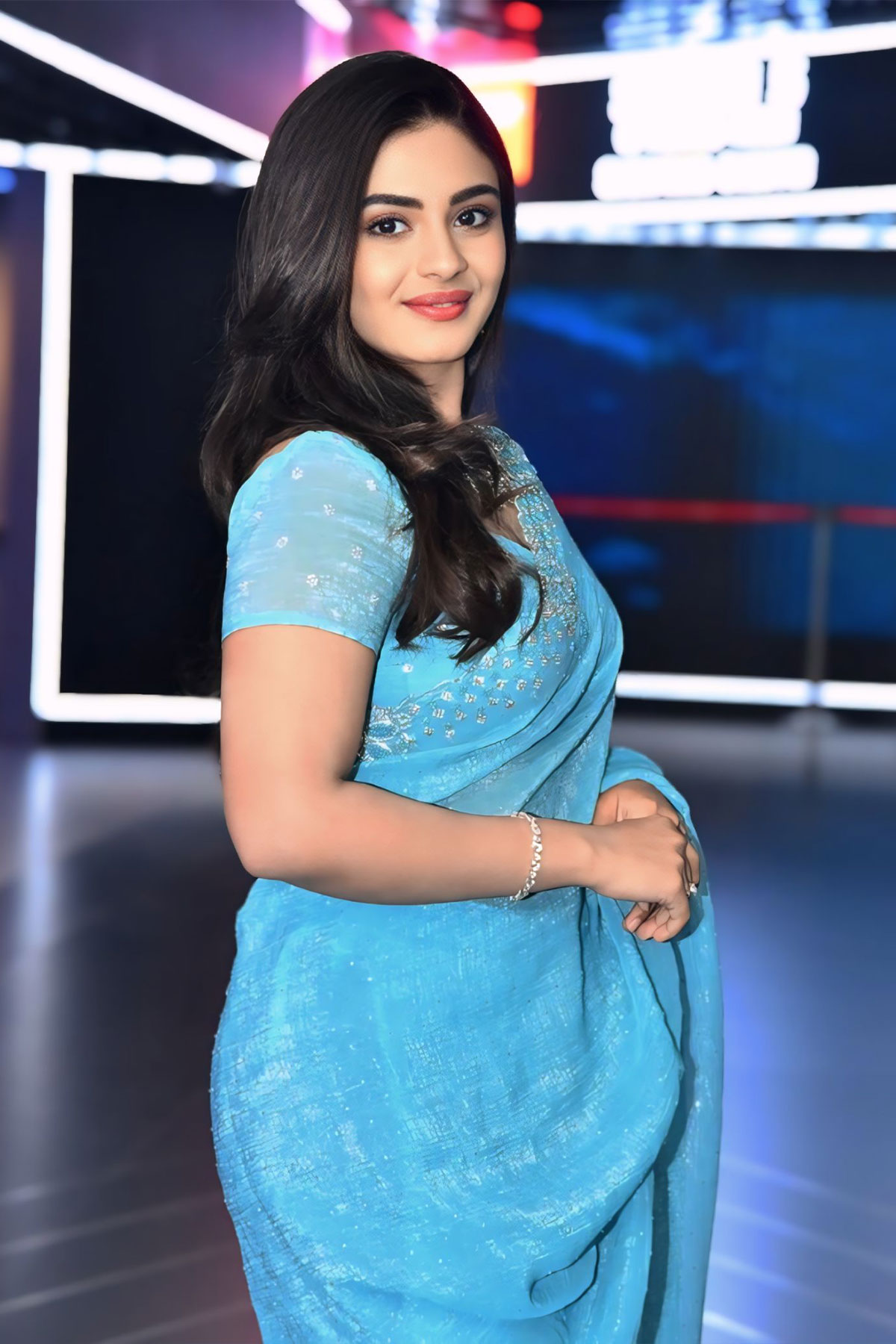 Nayan Sarika leaves fans spellbound in an ethereal, lightweight sky blue georgette saree. View the gorgeous high-quality event stills here.