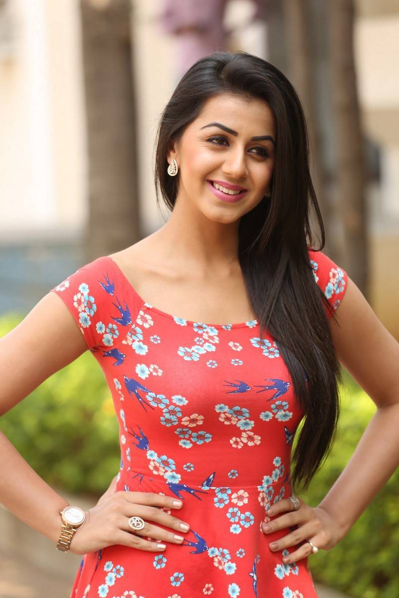Nikki Galrani hot stills At Malupu Movie Press Meet wearing red polka dot red short dress.