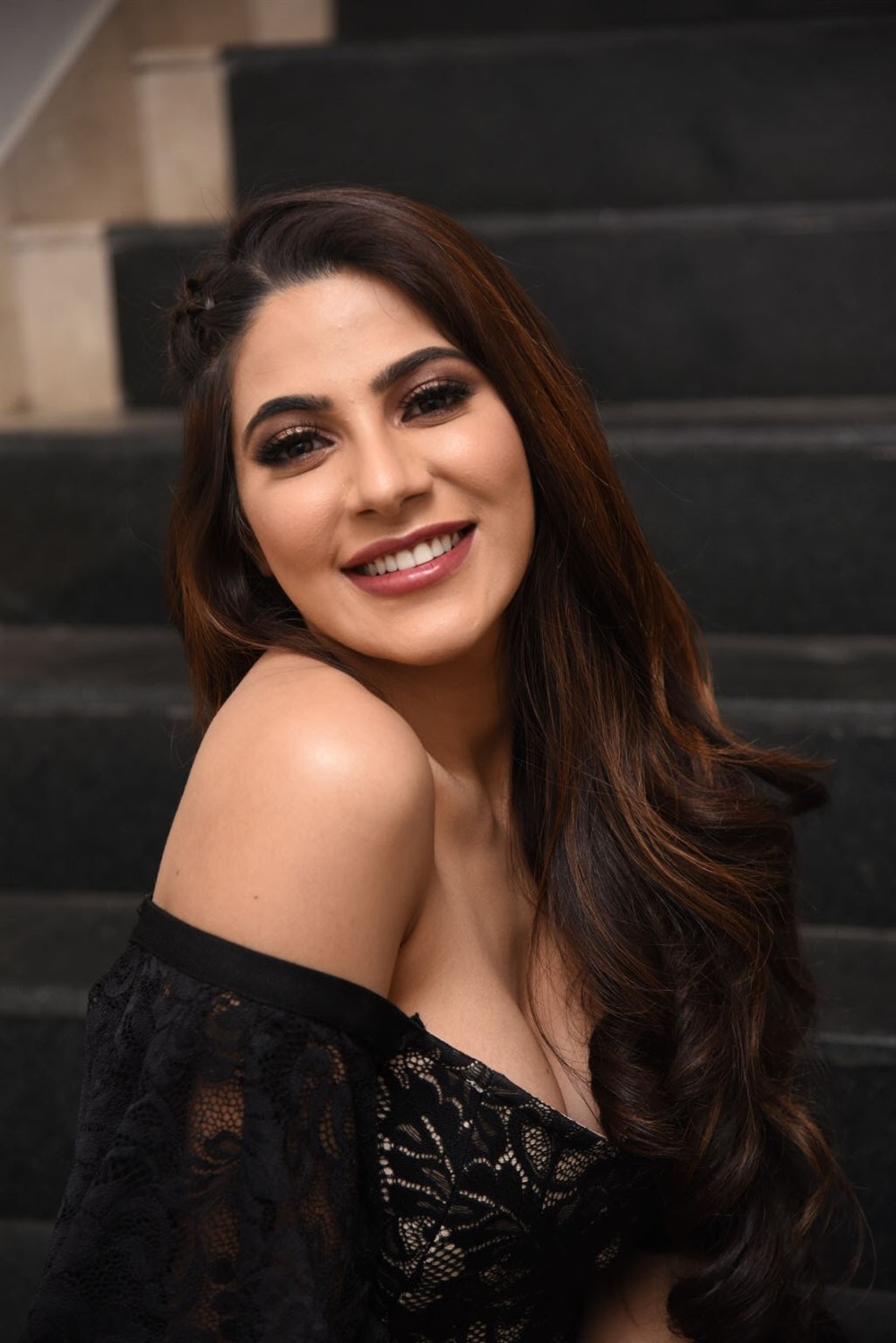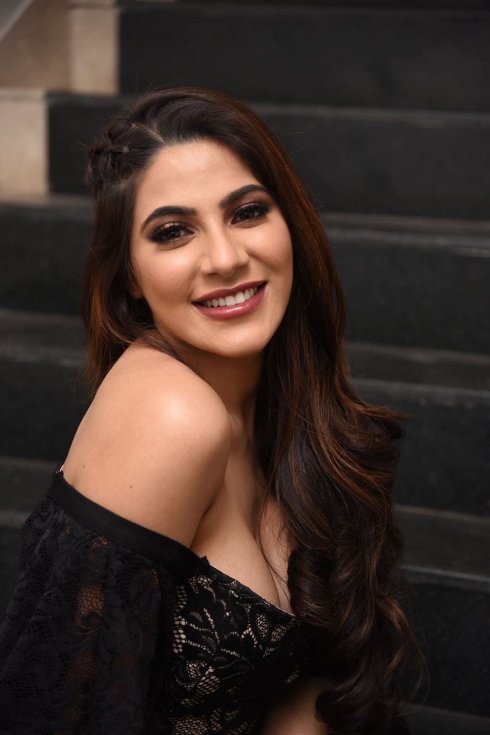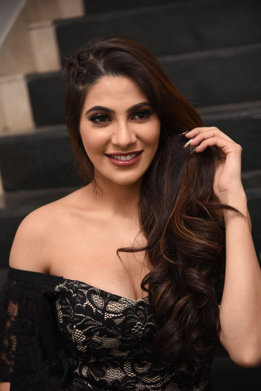 Nikki Tamboli at Thippara Meesam Pre-Release Event. Tollywood movie Thippara Meesam actress Nikki Tamboli stills at the movie pre release function.