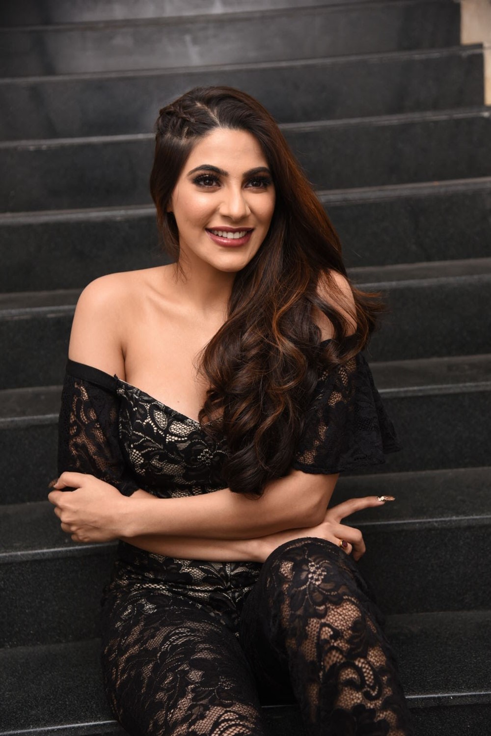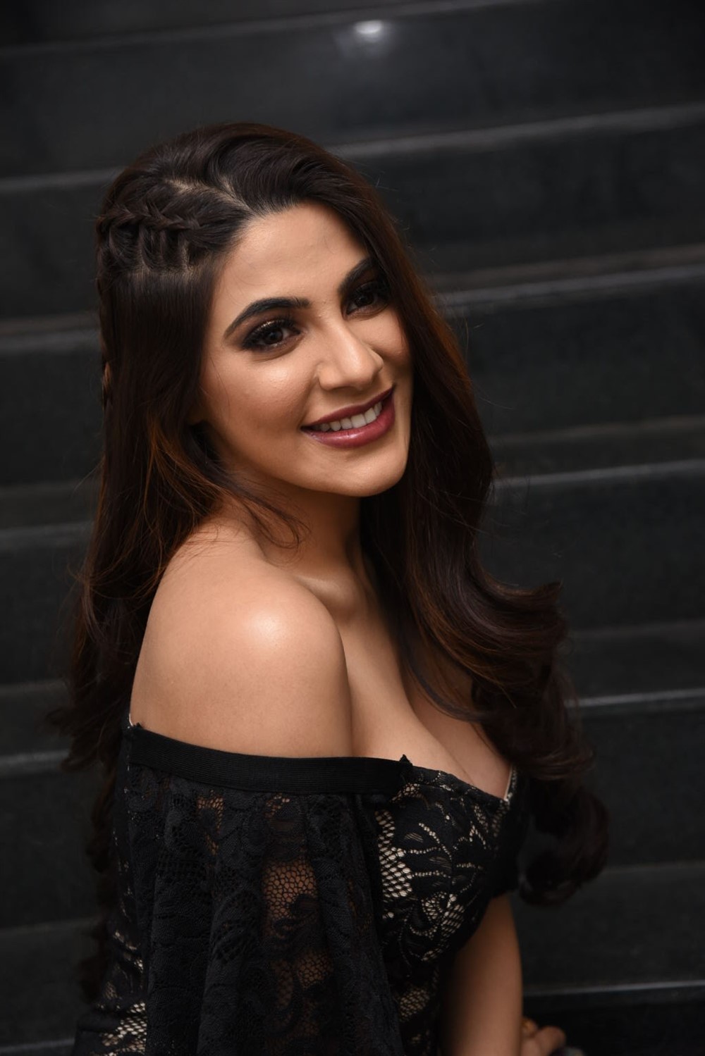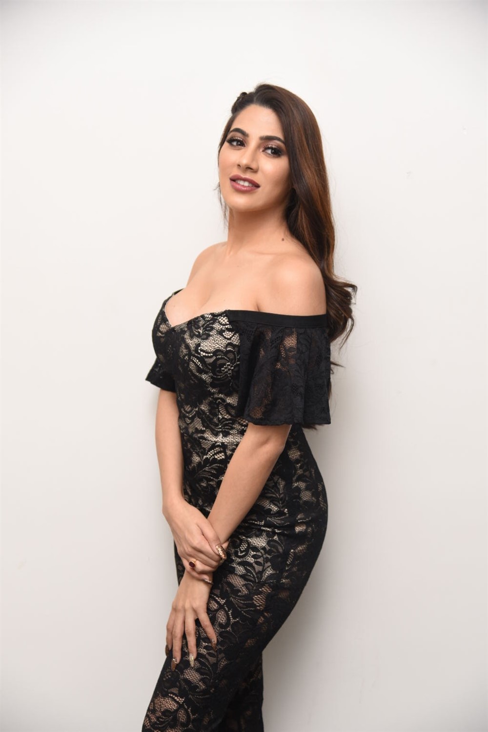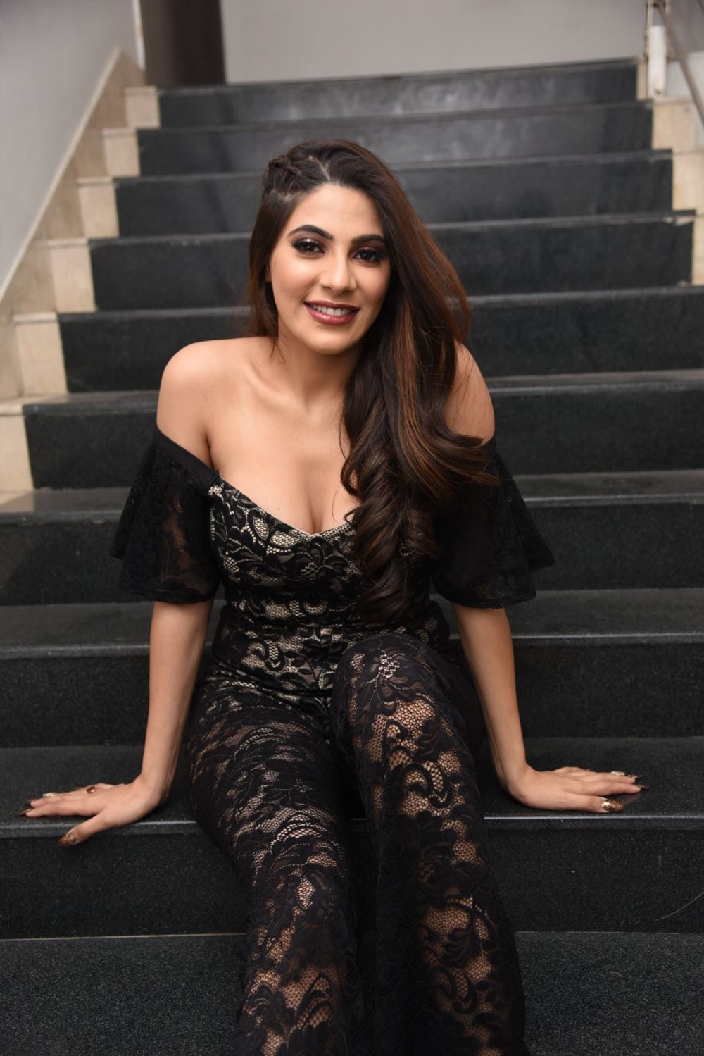 Nikki Tamboli hot stills at Thippara Meesam movie press meet.