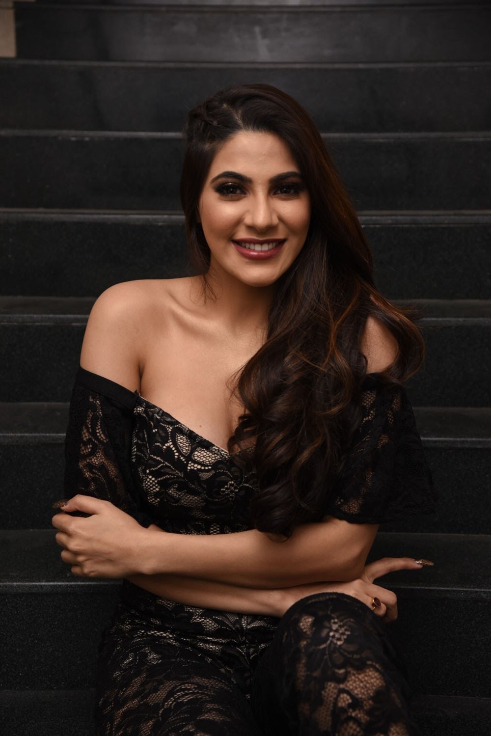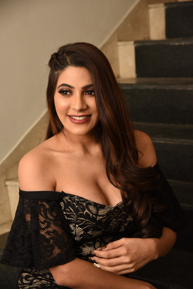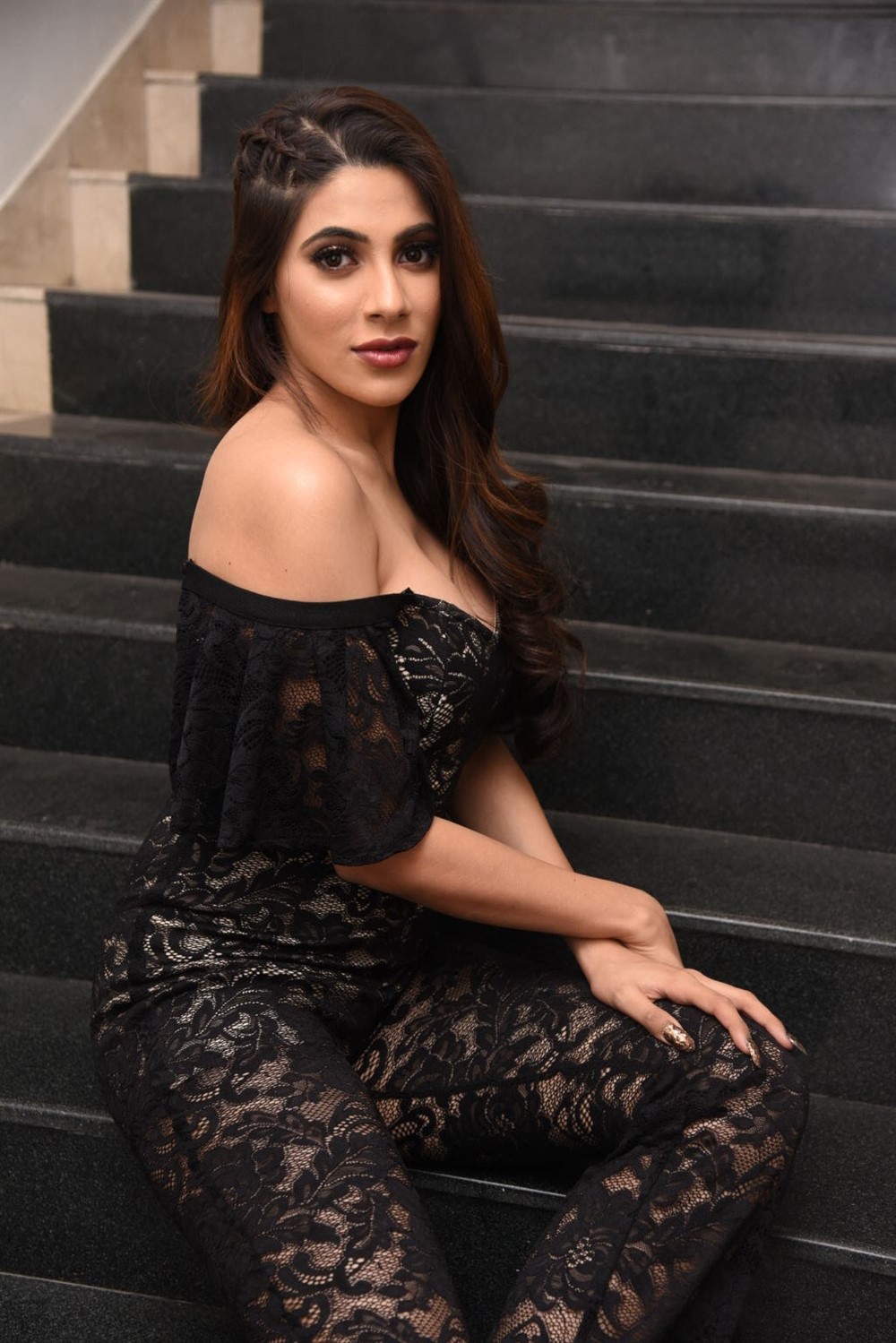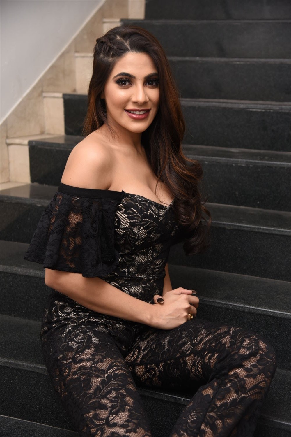 Nikki Tamboli hot stills at Thippara Meesam movie press meet.