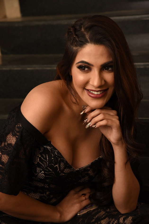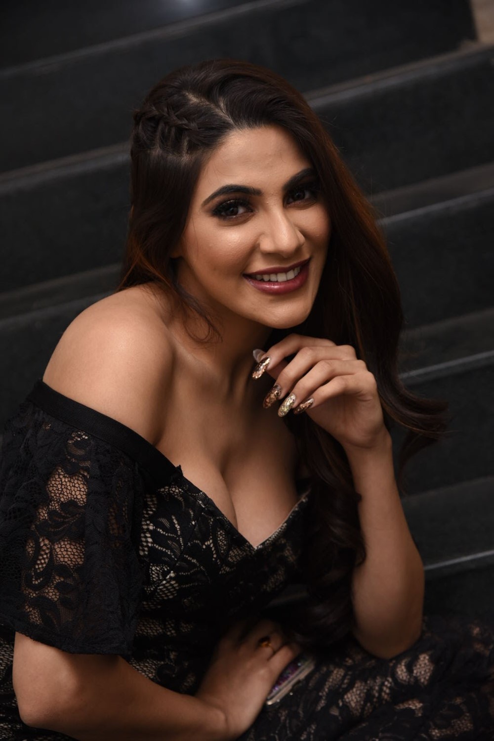 Nikki Tamboli hot cleavage stills at Chikati Gadhilo Chithakottudu movie Success Meet