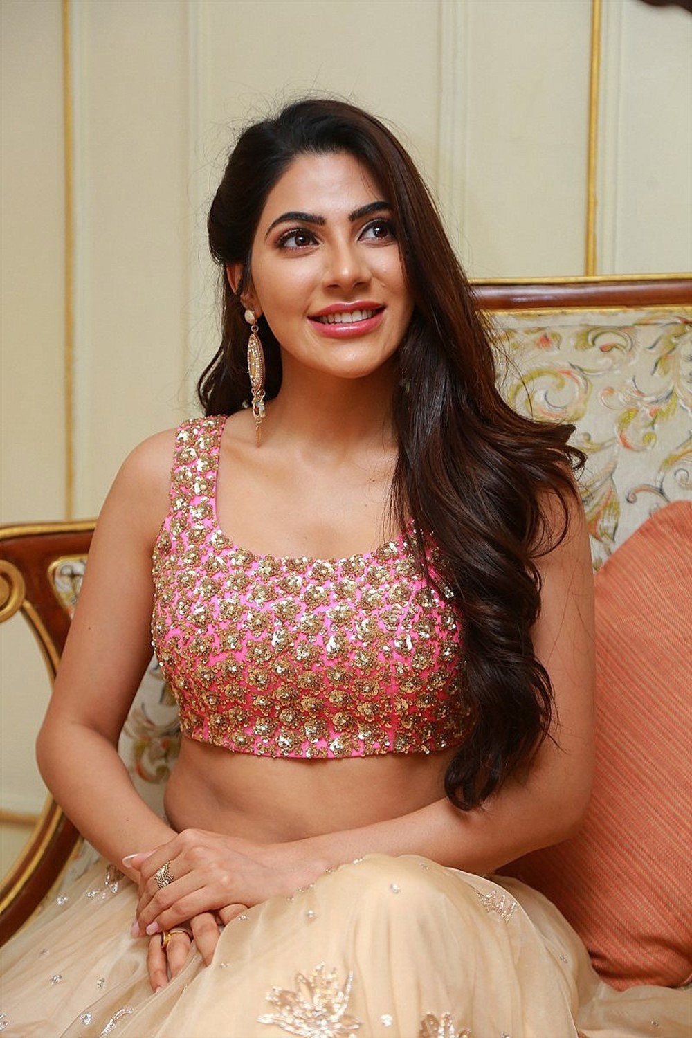 Nikki Tamboli hot stills at Thippara Meesam movie press meet.