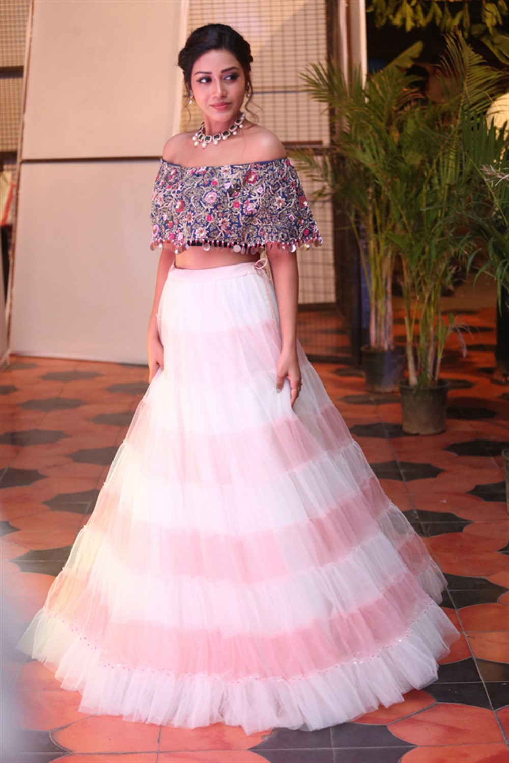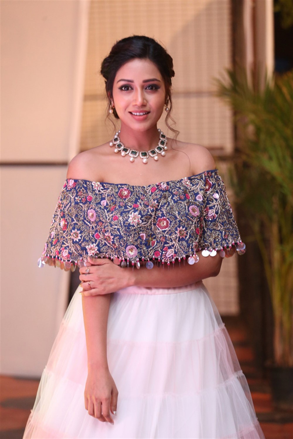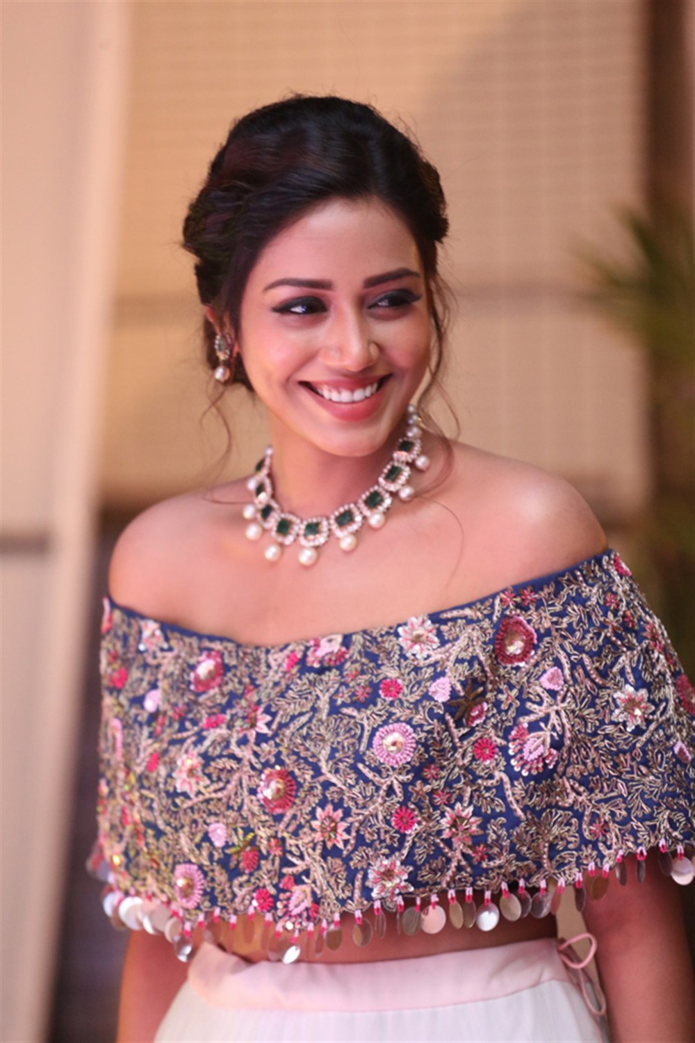 Nivetha Pethuraj latest stills in lehenga at her upcoming Telugu moive Das Ki Dhamki Press meet.