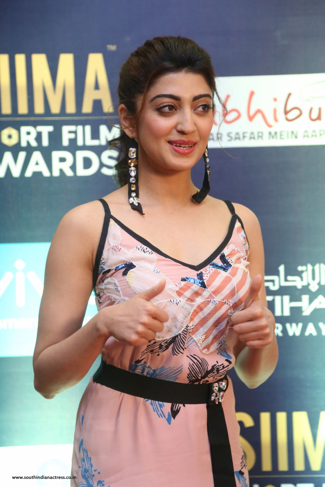 It was a printed peach dress with a pair of strapped heels for Pranitha Subhash at the SIIMA Short Film Awards. Pranitha Subhash was also wearing studded long earrings. Nevertheless, the actress pulled off the western look effortlessly in Pink.
