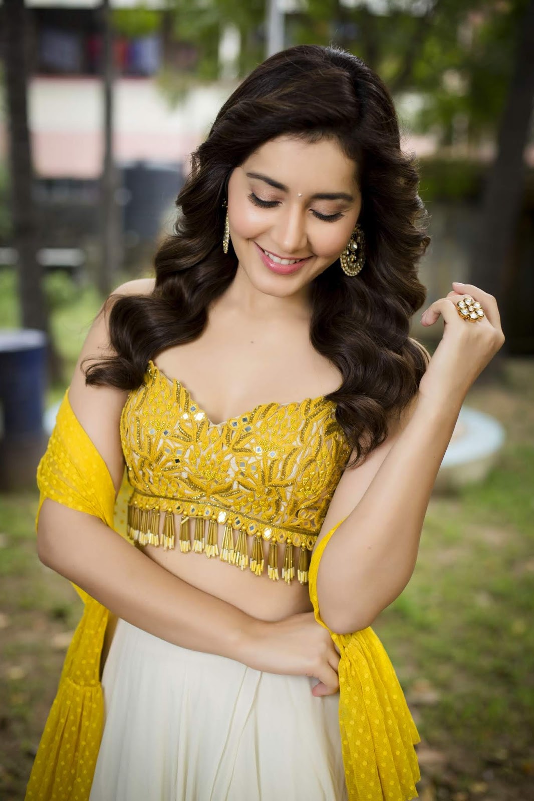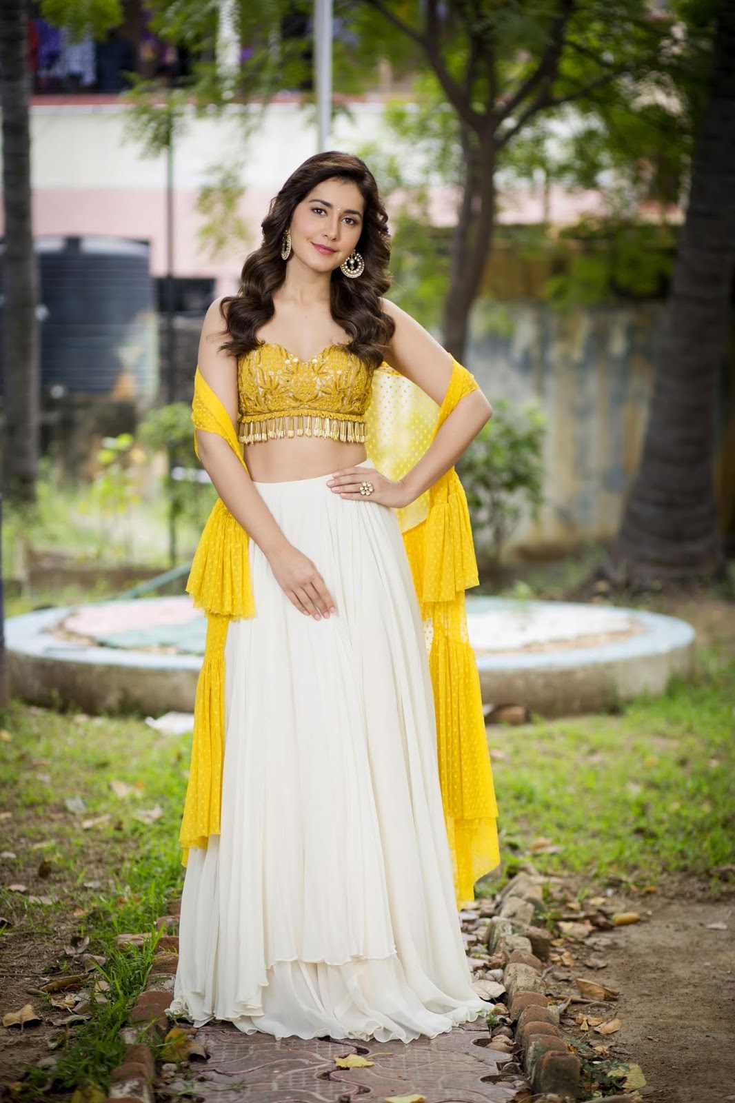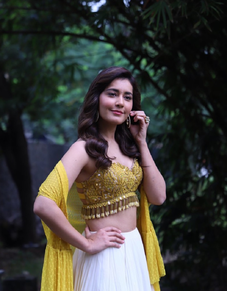 Raashi Khanna latest stills in yellow outfit styled by Archa Mehta. Photographed by Eshaan Girri. Makeup by Aprna Mitter.