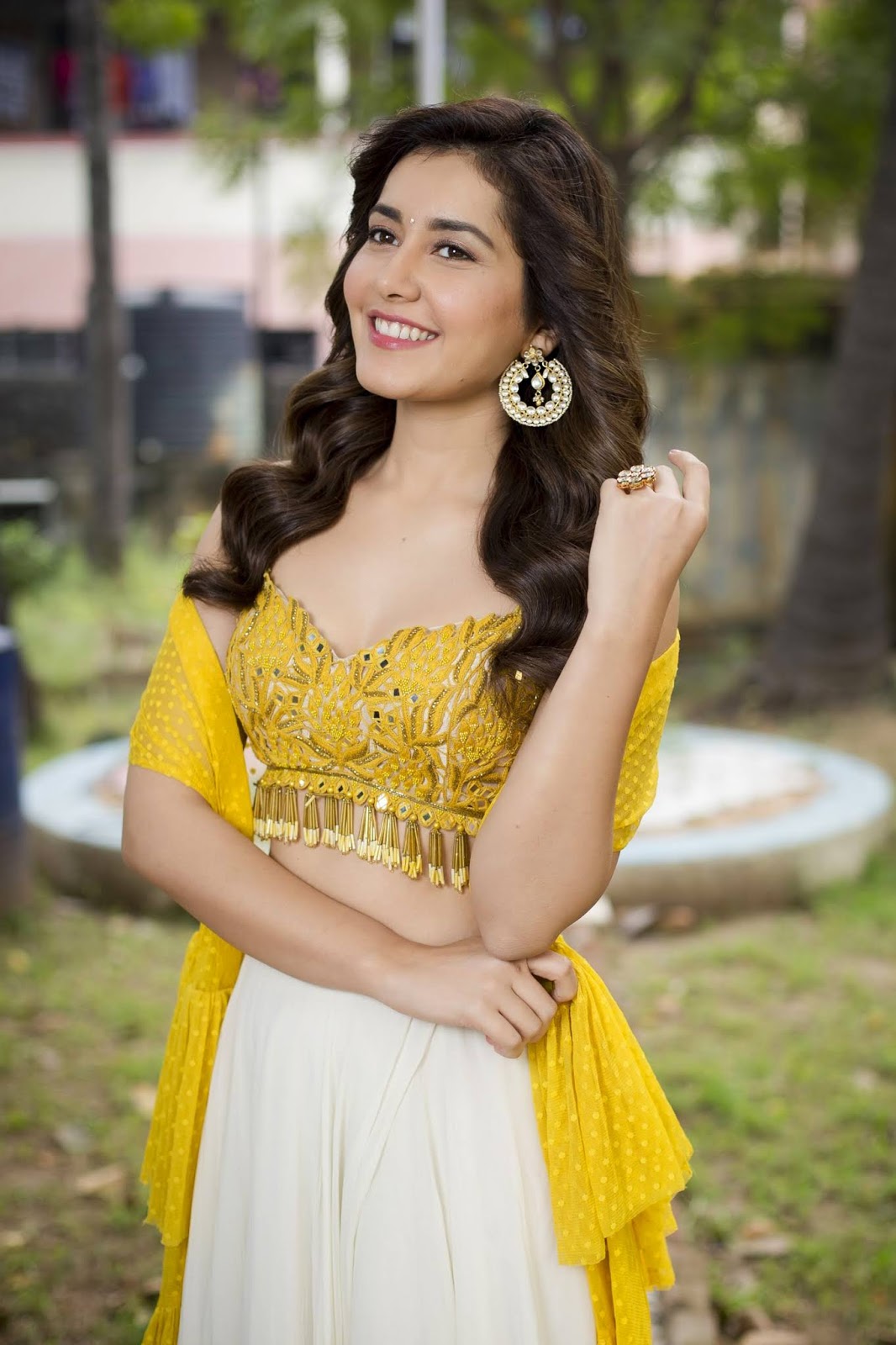 Raashi Khanna hot stills in traditional wear lehenga at her upcoming Telugu movie Baak pre release event.