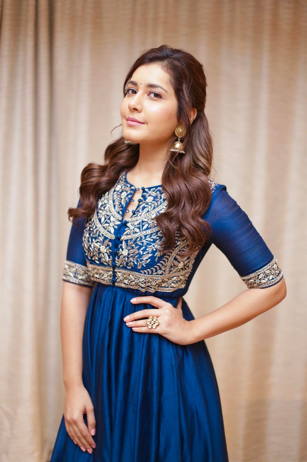 Raashi Khanna hot stills in traditional wear lehenga at her upcoming Telugu movie Baak pre release event.
