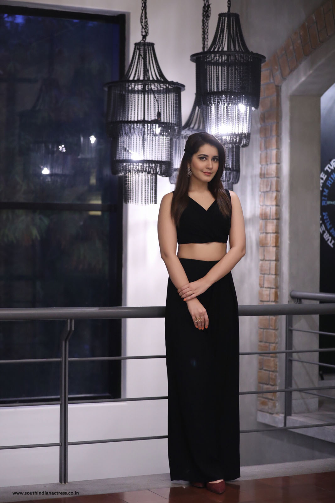 Raashi Khanna hot stills in traditional wear lehenga at her upcoming Telugu movie Baak pre release event.