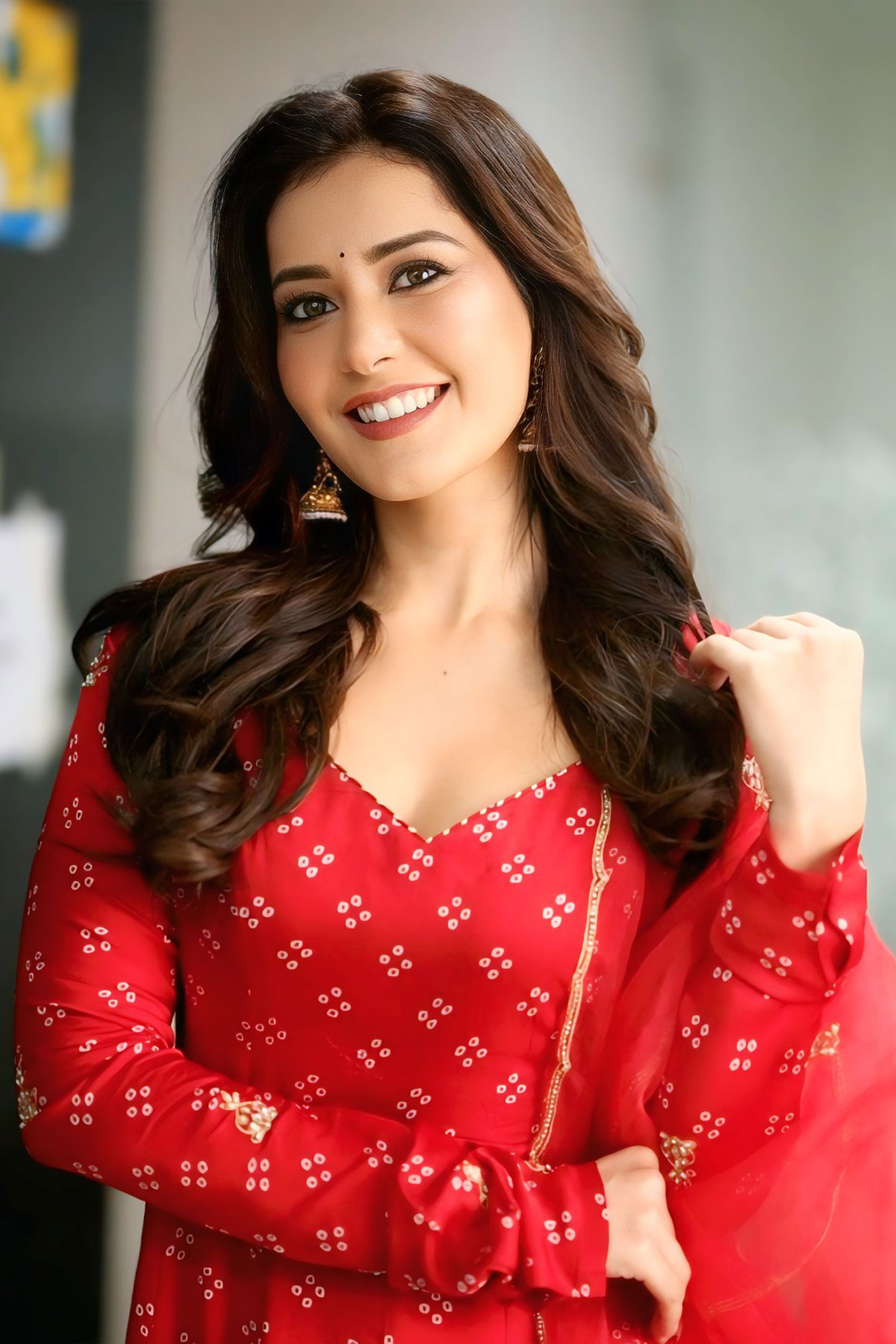 Raashii Khanna’s Anarkali Stills: Rangreza Bandhej Red Set