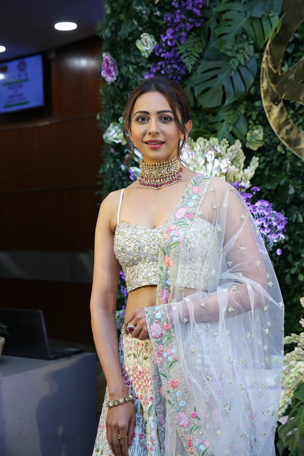 Rakul Preet Singh stills in full sleeve off white lehenga at Bharateeyudu 2 (Indian 2) Pre-release Event.