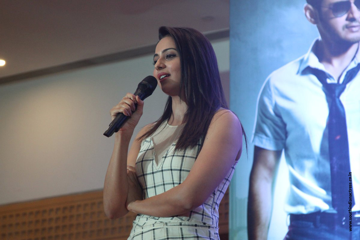 SPYder Chennai Press Meet Rakul Preet Singh Photos. Speaking at Spyder Movie Press Meet heroine Rakul says that Spyder movie is her dream project. She said this is her debut movie in Tamil while hoping Taml people will also accept her well like how Telugu people did. Rakul Preet Singh wore a beautiful outfit by Urvashi Kaur. It was a beautiful white broad checkered midi dress with an overlapping hemline with a centre slit. Black Strappy Heels with poker straight hair and minimal makeup finished off her look and we think it is a superb pick for a casual date or outing.