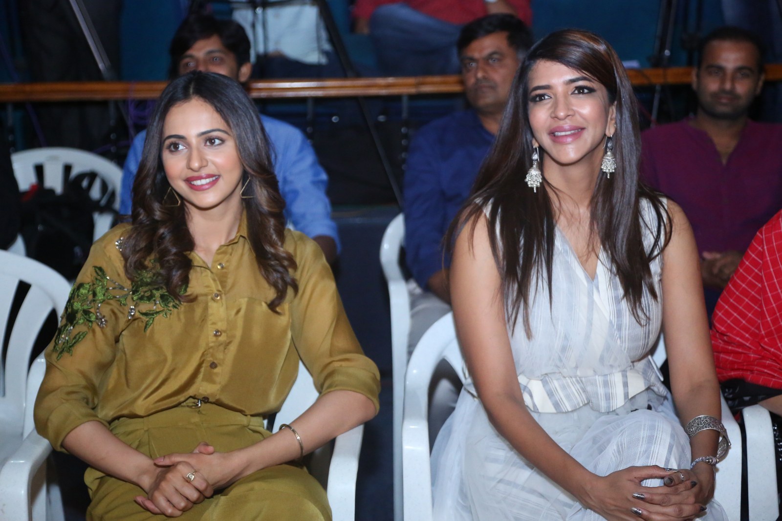 Rakul Preet Singh stills in full sleeve off white lehenga at Bharateeyudu 2 (Indian 2) Pre-release Event.