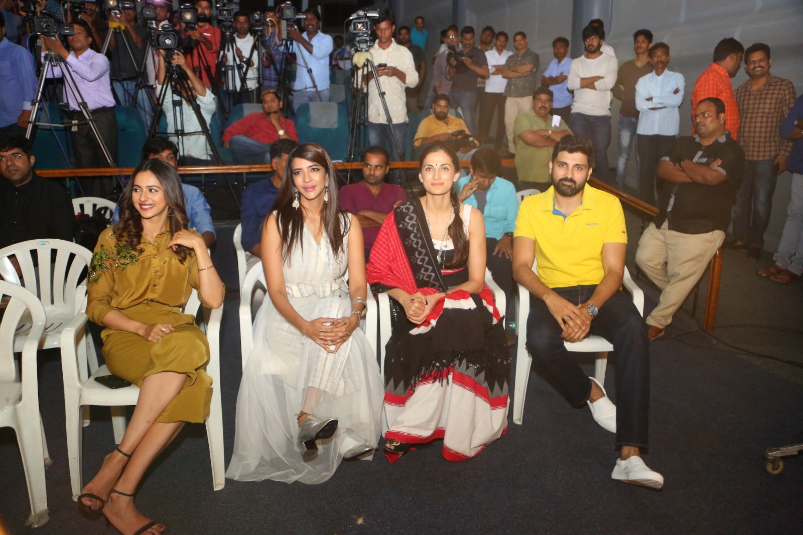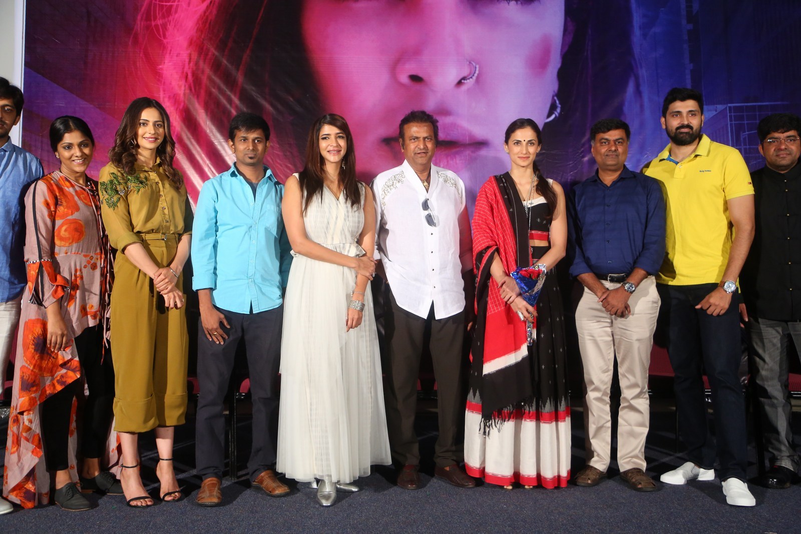 Rakul Preet Singh Stills From Wife Of Ram Movie Trailer Launch wearing Babita Malkani & Omnia Design Company styled by Neeraja Kona