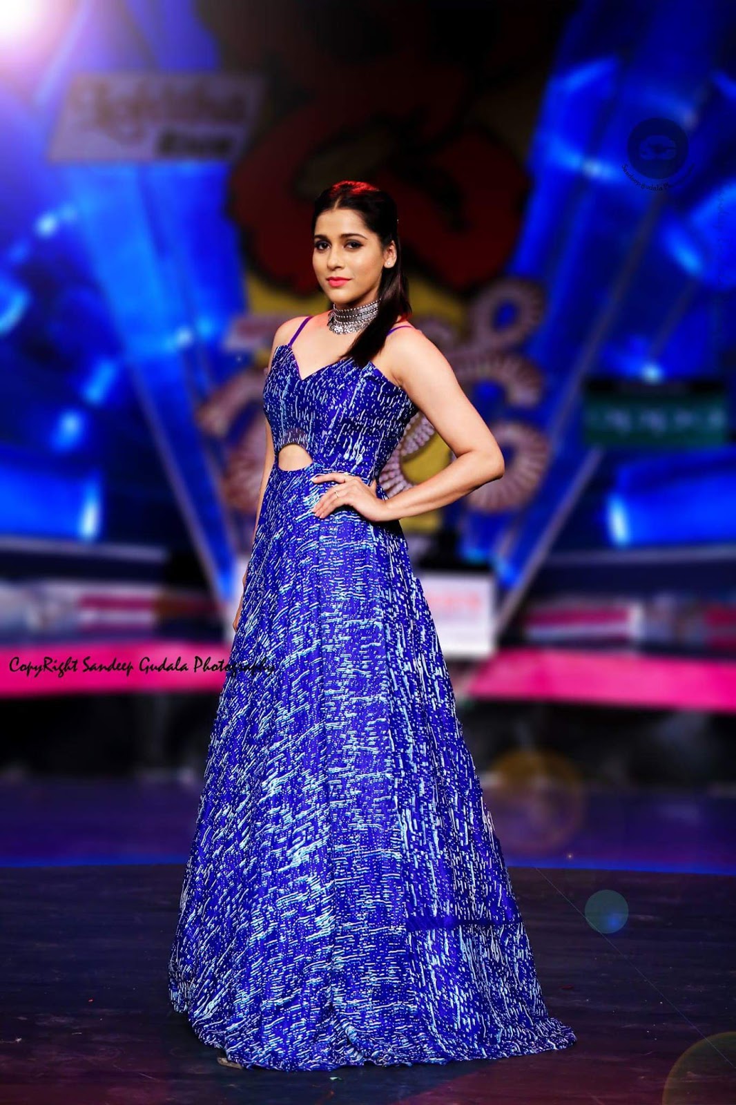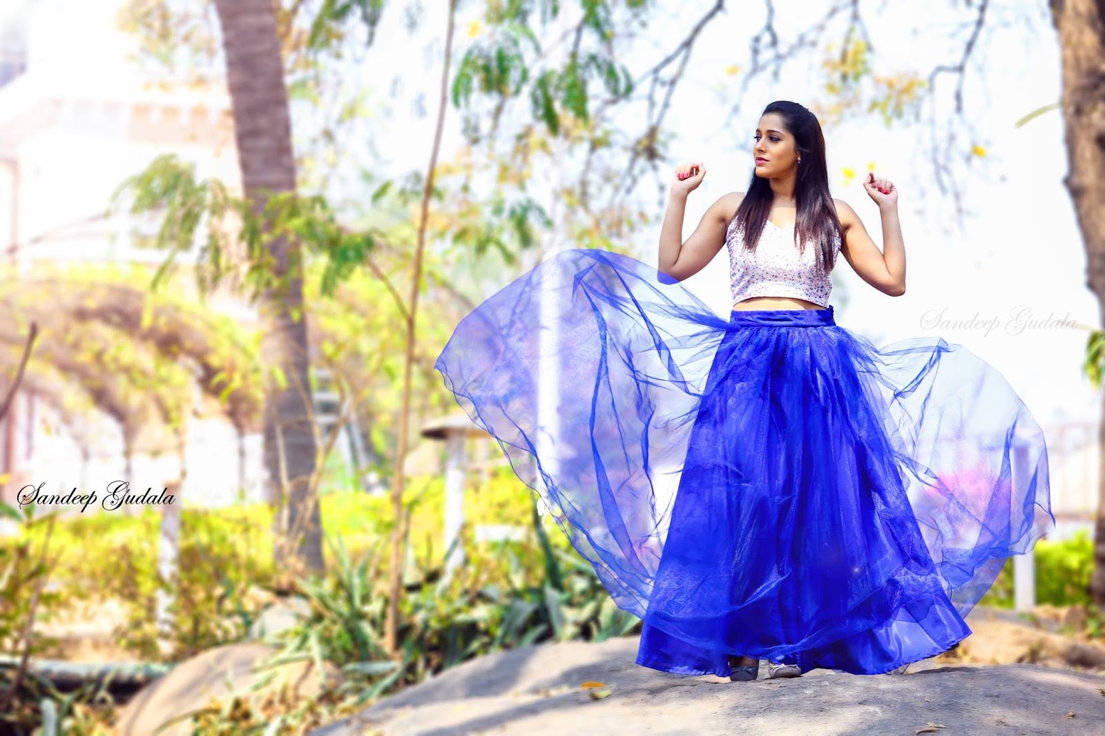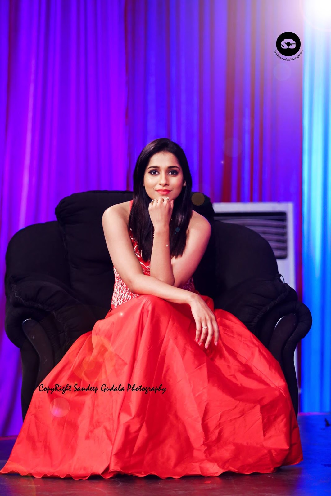 Rashmi Gautam photoshoot stills by photographer Sandeep Gudala. Rashmi Gautam wearing outfit styled by Sruthi Bandra (Duta Couture).