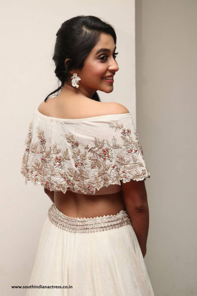 Regina Cassandra made a bold statement in a cream color embellished cape lehenga y Anushree Reddy at the Gemini Ganeshanum Suruli Raajanum Movie Audio Launch. Bold ear studs and arm cuff by MiRA by Radhika Jain were her accessories. She finished off her look with a side swept ponytail!