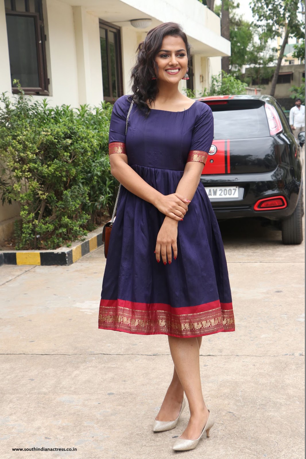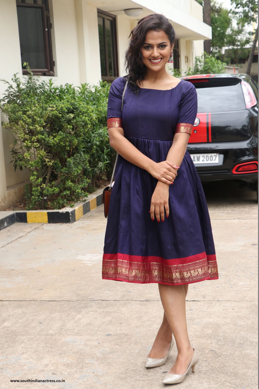 Shraddha Srinath stills in Pink Cotton cutout dress at Telugu movie Mechanic Rocky Interview. Outfit styled by Nidhi Jeswani for Truffle brand. Buy this...