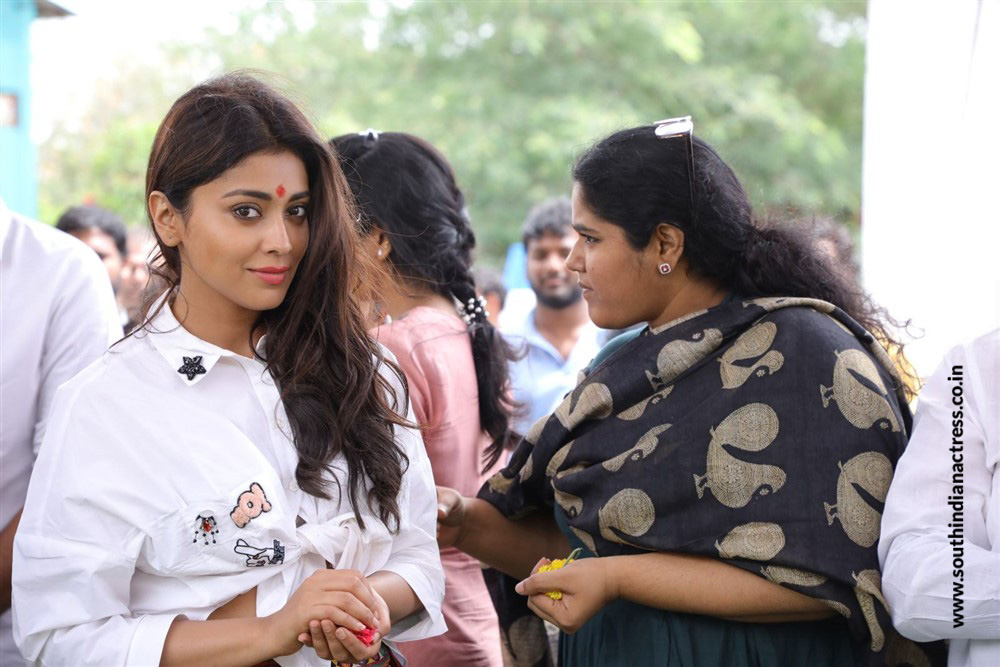 Shriya Saran is making a comeback to films after her marriage. The new film was launched recently in Hyderabad. Sujana, Gnana Shekar, Varun Tej, Krish, Gottimukkala Padma Rao, Rajeev Reddy, Sai Babu, Ramesh Karutoori, Gemini Kiran were seen at the event.