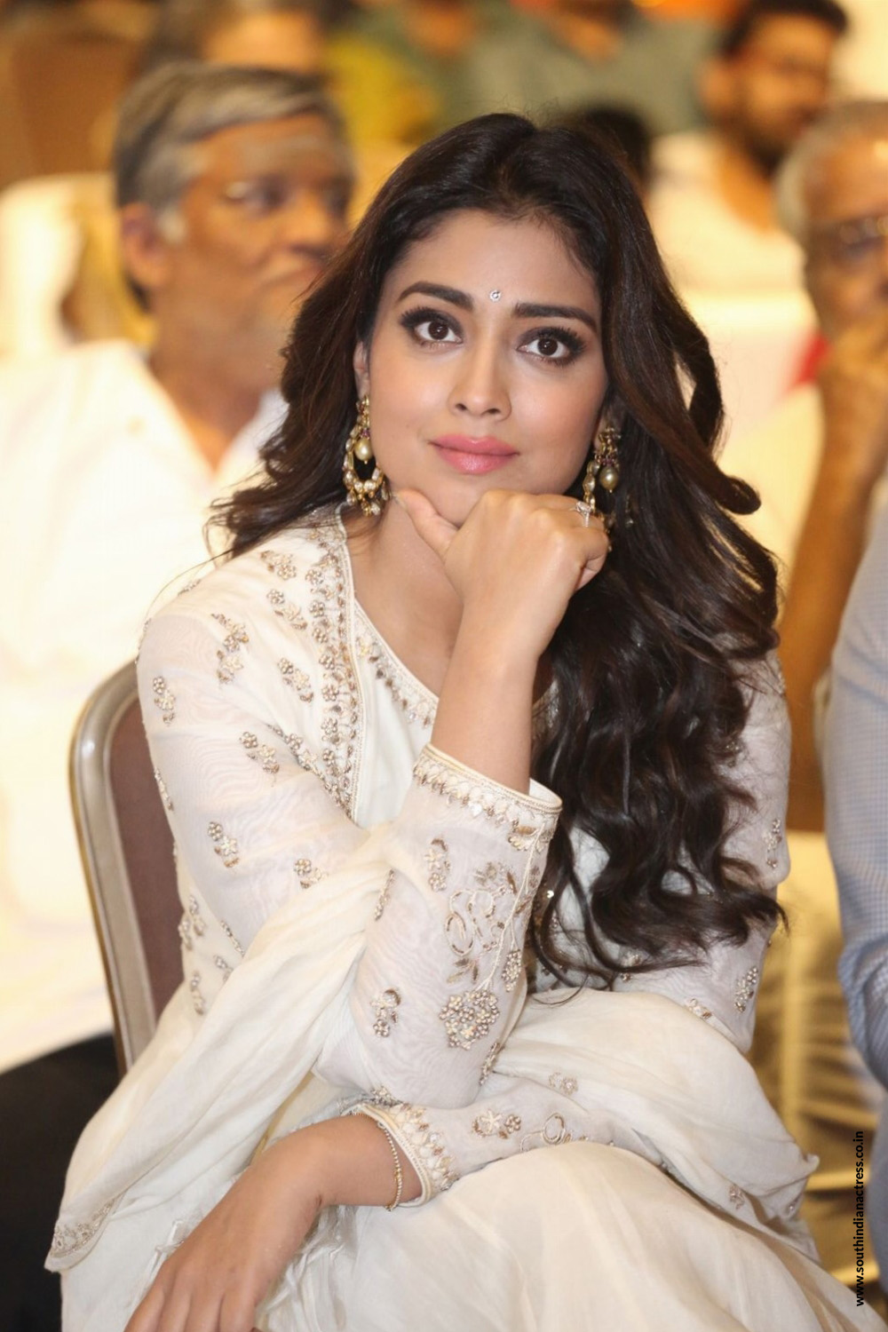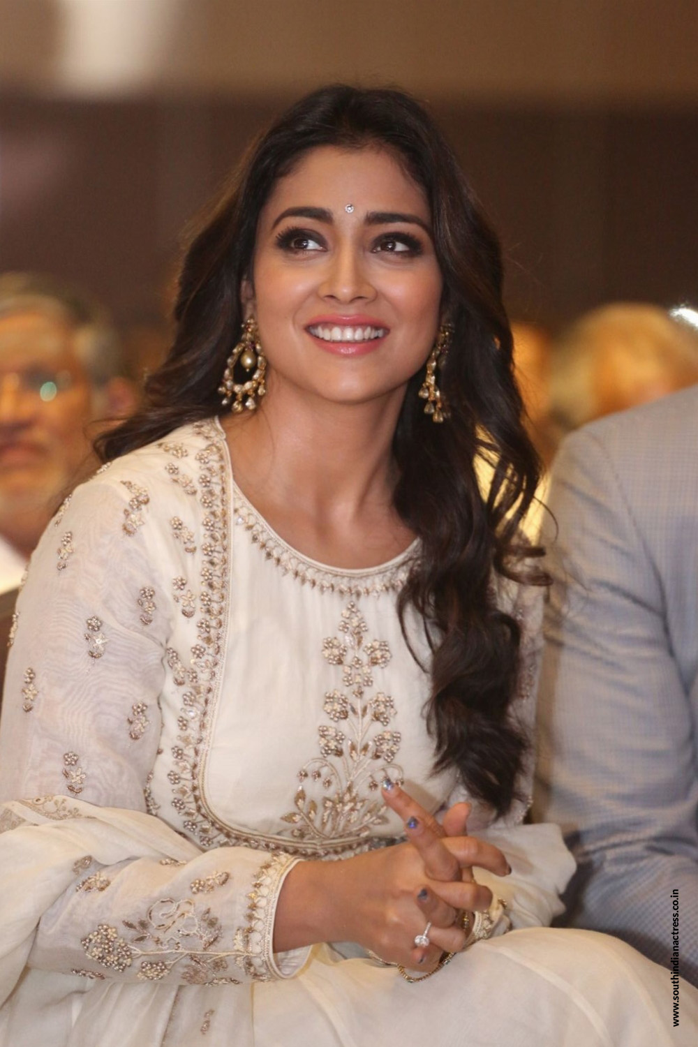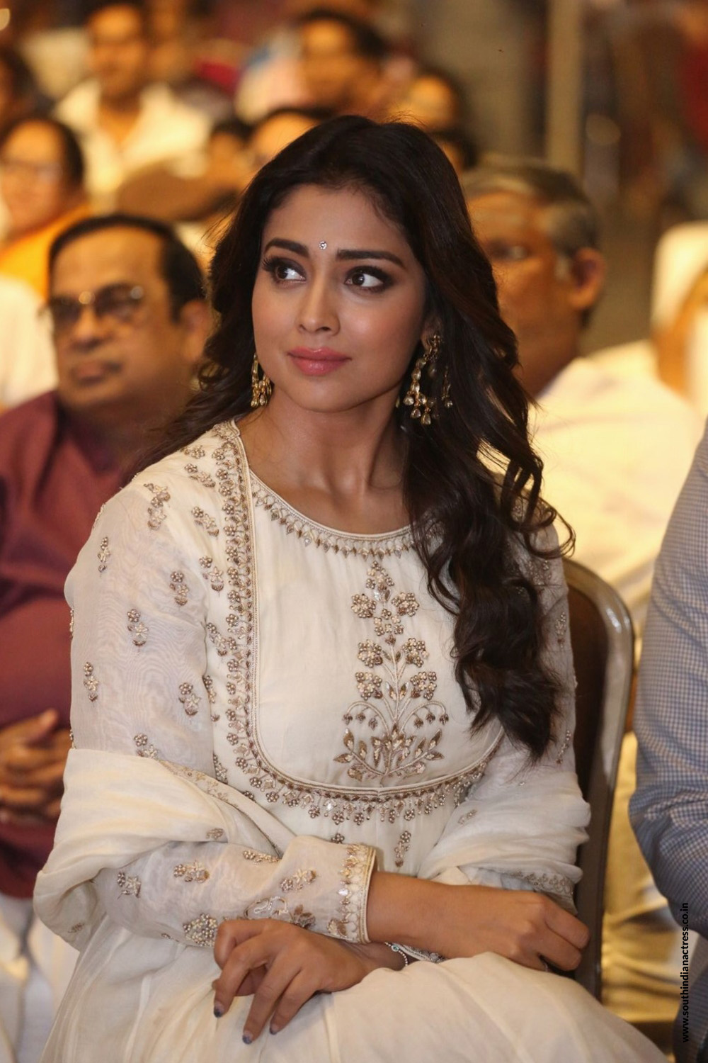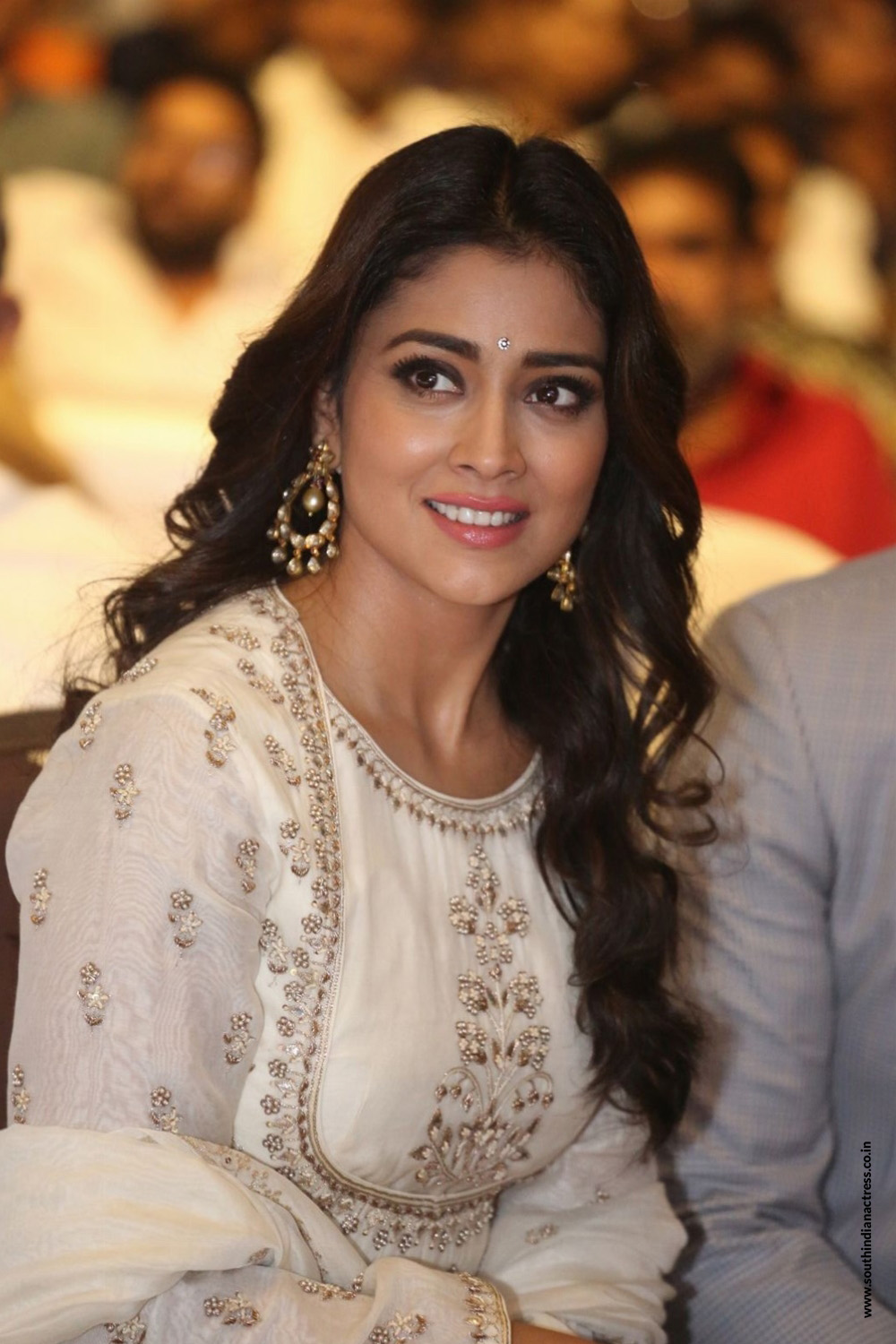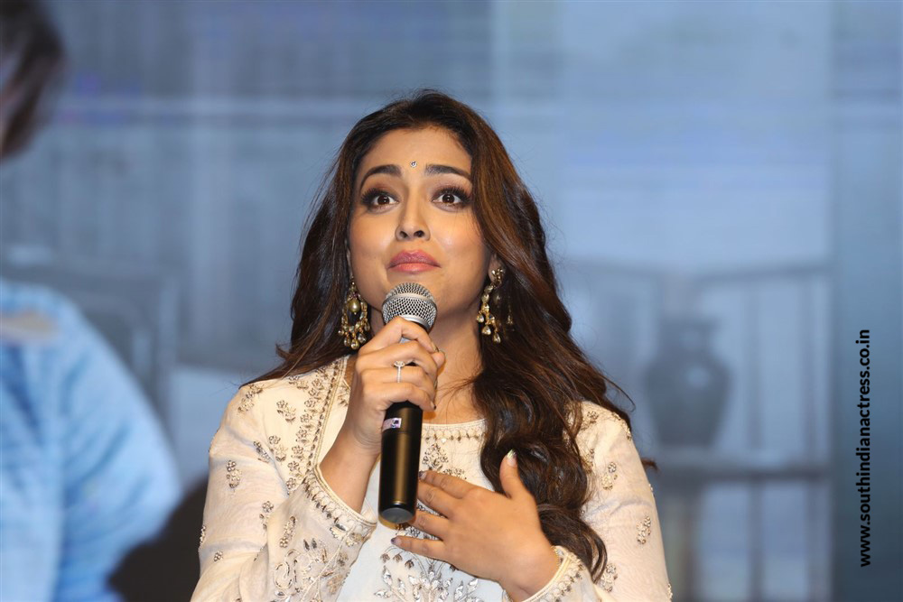Shriya Saran stills in colour-full off shoulder gown From Music School movie interview.