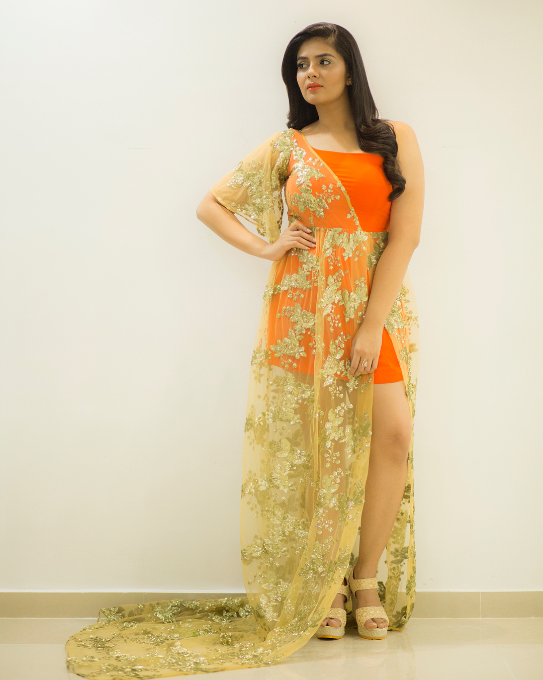SreeMukhi in floral outfit by Kirthana Sunil(Rekha’s House of Coutures)