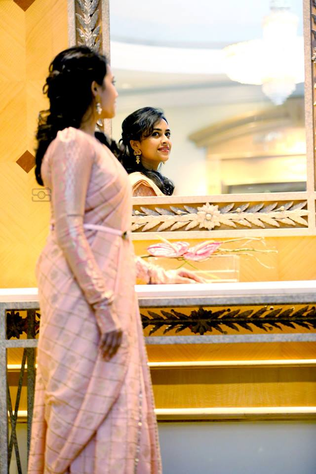 Sri Divya attended a Natchathira Vizha 2018 event in Malaysia wearing a beige silk saree teamed up with a matching full sleeves blouse. She accessorized her look with a belt and big earrings. Subtle make-up and simple hair-do enhanced her ethnic look.