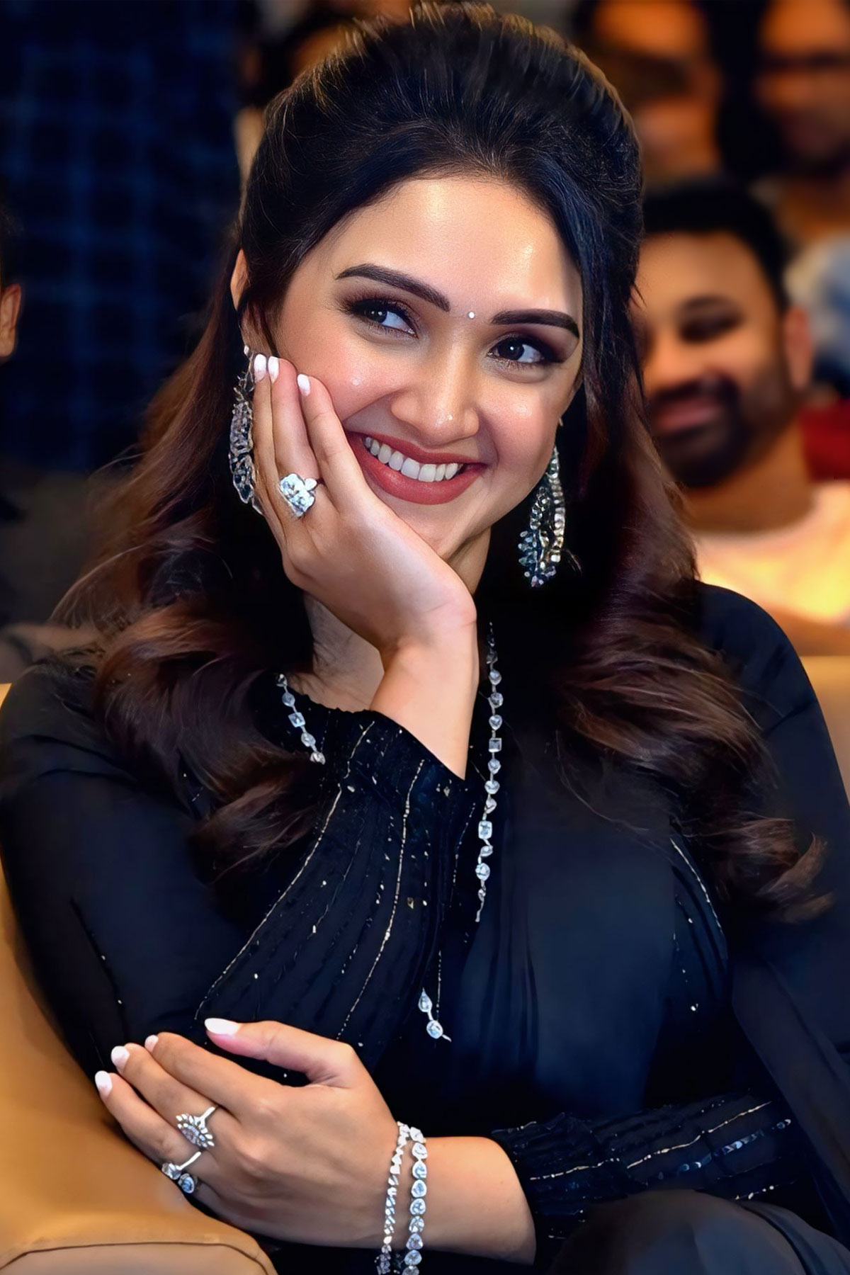 Sridevi Vijaykumar looks incredibly elegant in a beautiful black satin saree at the Sundarakanda movie pre-release event. A truly graceful appearance!